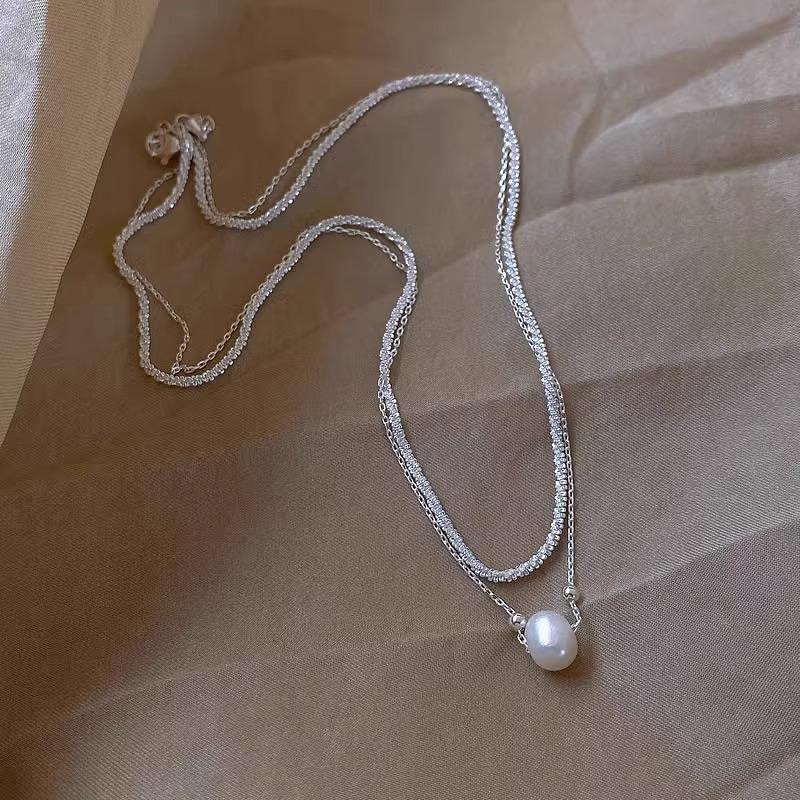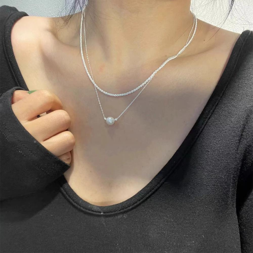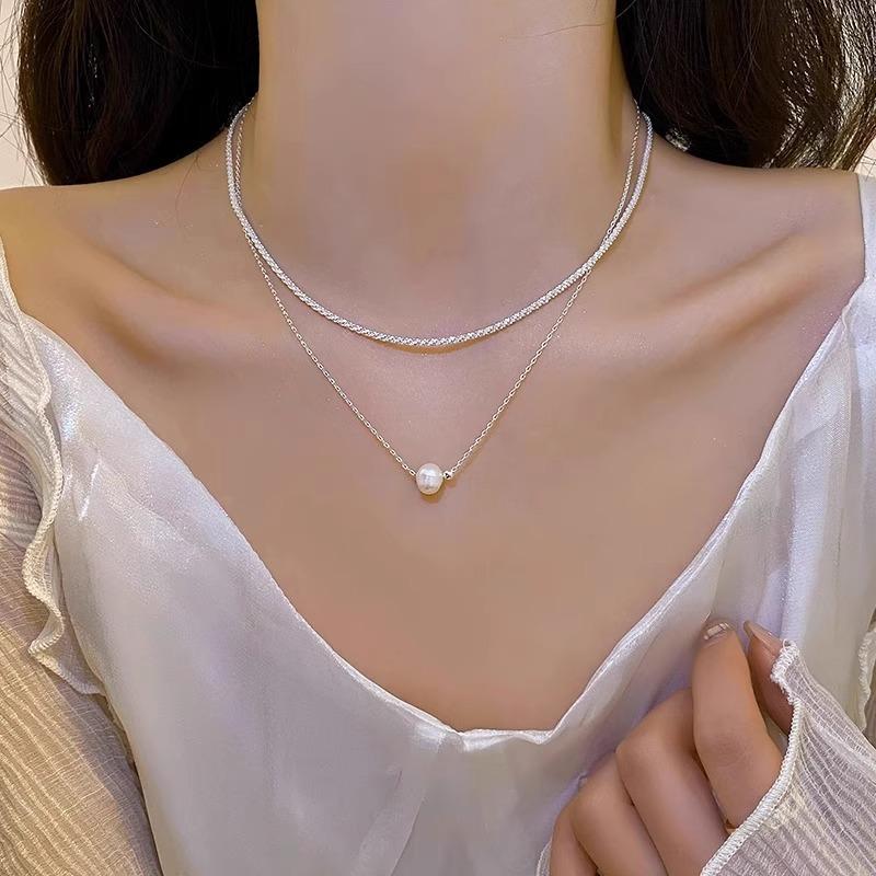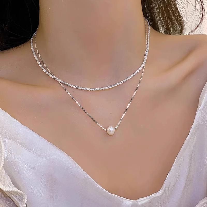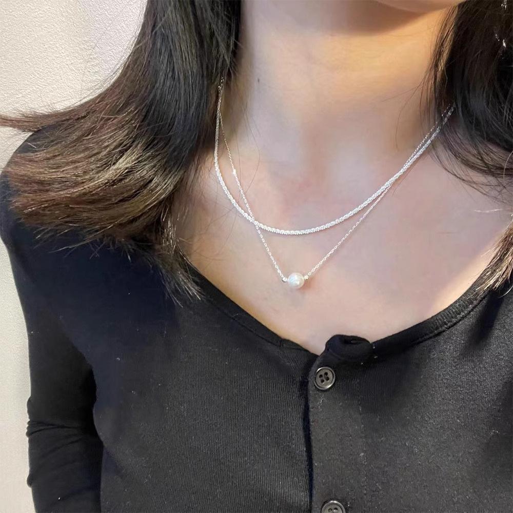 Colar de água doce empilhado de camada dupla, feminino, moda, celebridade da internet, design brilhante, avançado, elegante, estilo frio, corrente de clavícula