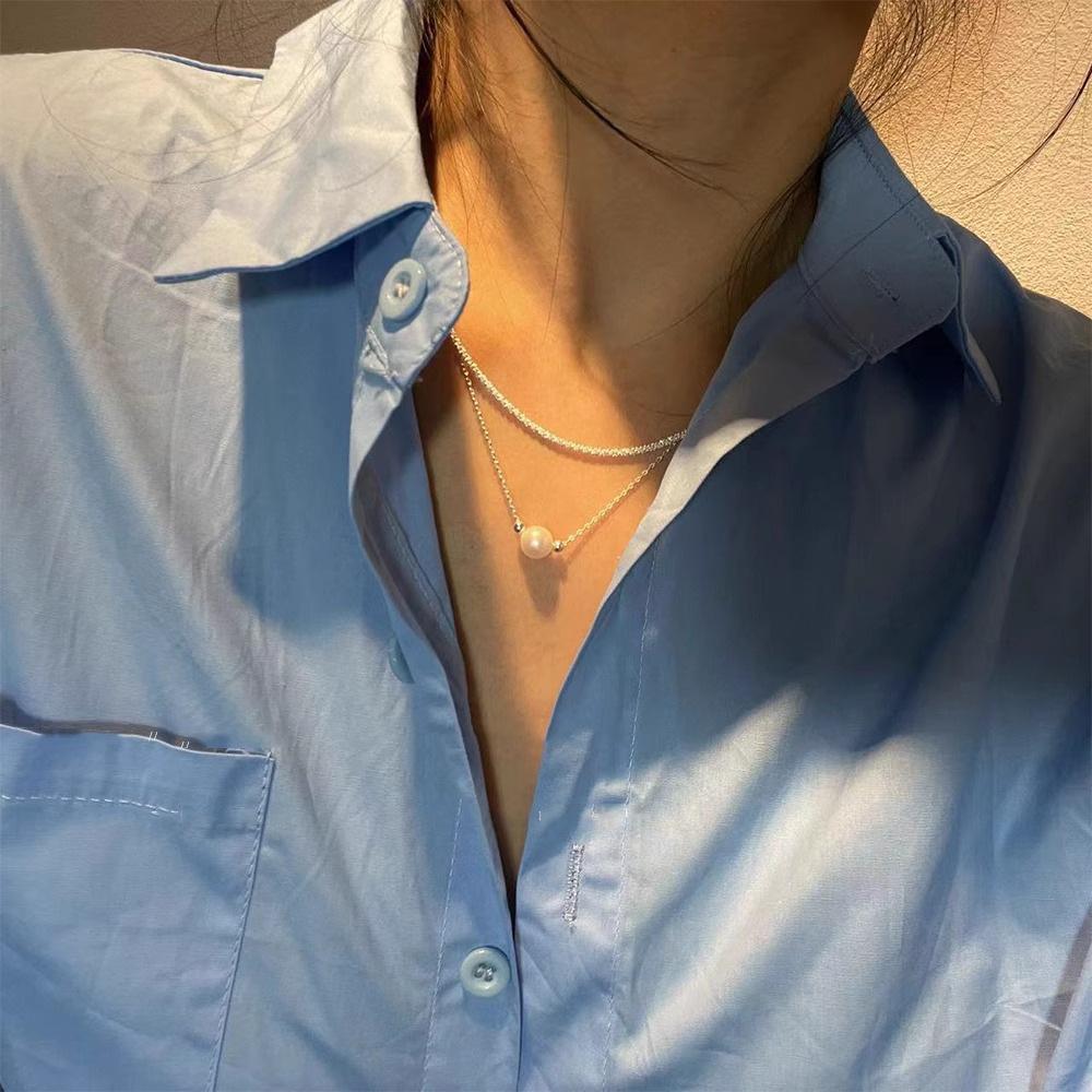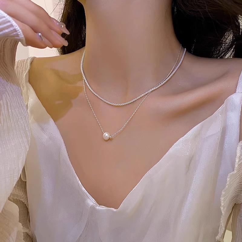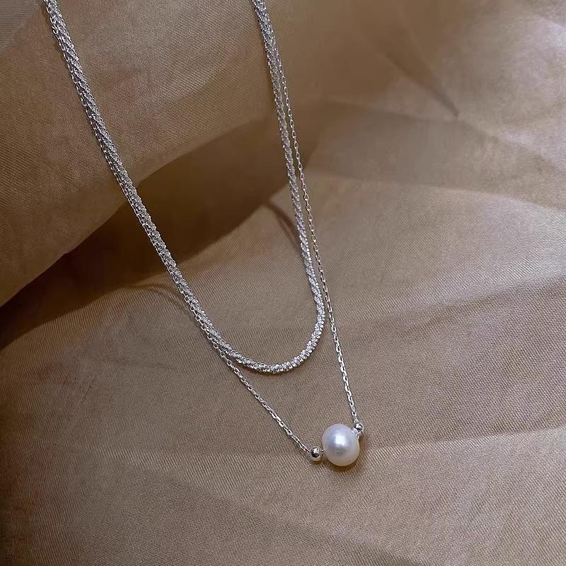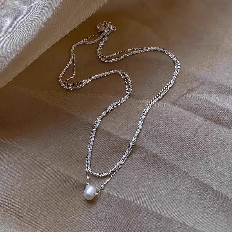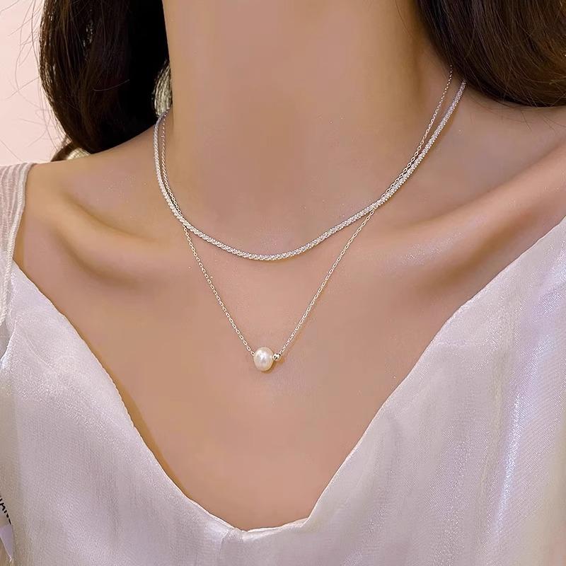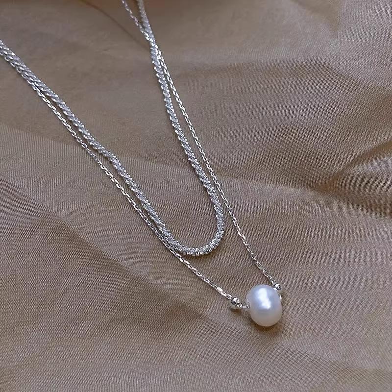 Colar de água doce empilhado de camada dupla, feminino, moda, celebridade da internet, design brilhante, avançado, elegante, estilo frio, corrente de clavícula
