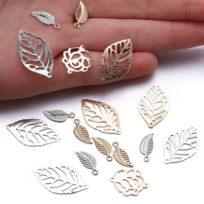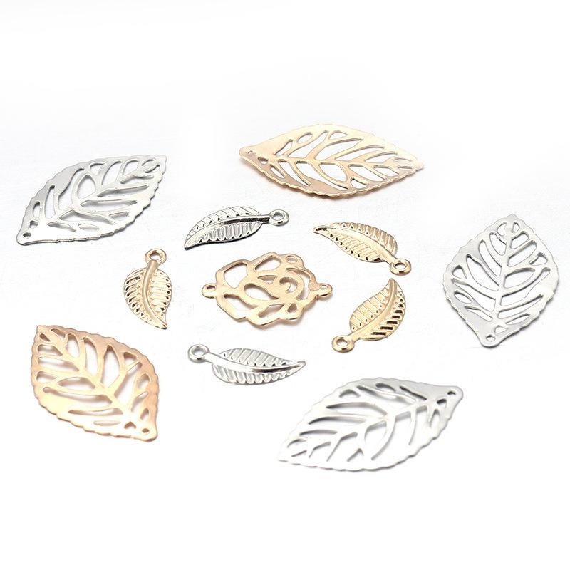 Compre Pingente de folha oca tridimensional banhado a ouro para casa acessórios decorativos de folhas faça você mesmo joias antigas material de ferro para pendurar no atacado no Joom.pro