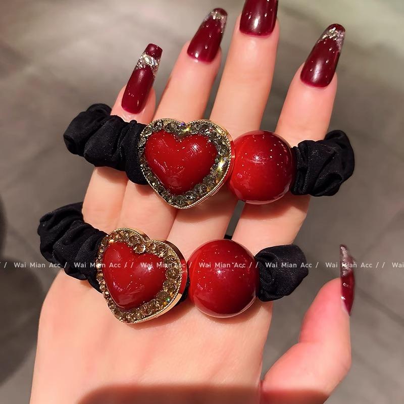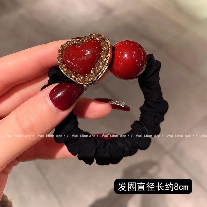 Anel de cabelo de intestino delgado vermelho de alta qualidade estilo coreano All-match, acessórios para cabelo, celebrante da Internet, cabeça de pamball, rabo de pinho