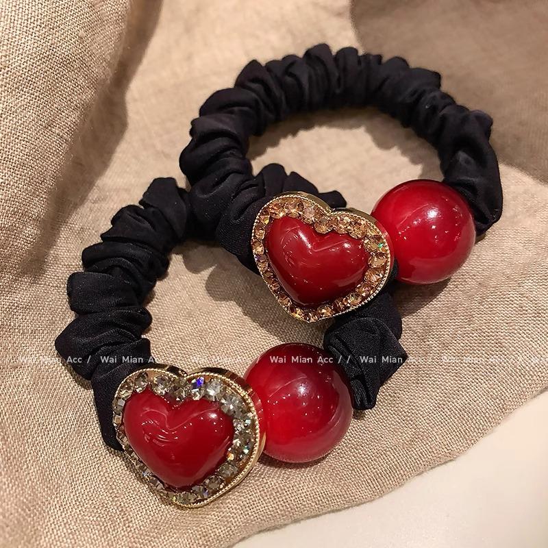 Compre Anel de cabelo de intestino delgado vermelho de alta qualidade estilo coreano All-match, acessórios para cabelo, celebrante da Internet, cabeça de pamball, rabo de pinho no atacado no Joom.pro
