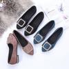 Sapatos femininos de camada única, camurça pontuda, fivela quadrada de metal, decoração 2020, outono, strass, salto baixo, sapatos baixos para mulheres