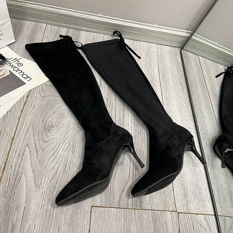 Meias forradas de lã Botas pontudas acima do joelho Botas femininas 2024 Novo outono e inverno Elástico Fino Grosso Skinny Perna Botas de salto alto