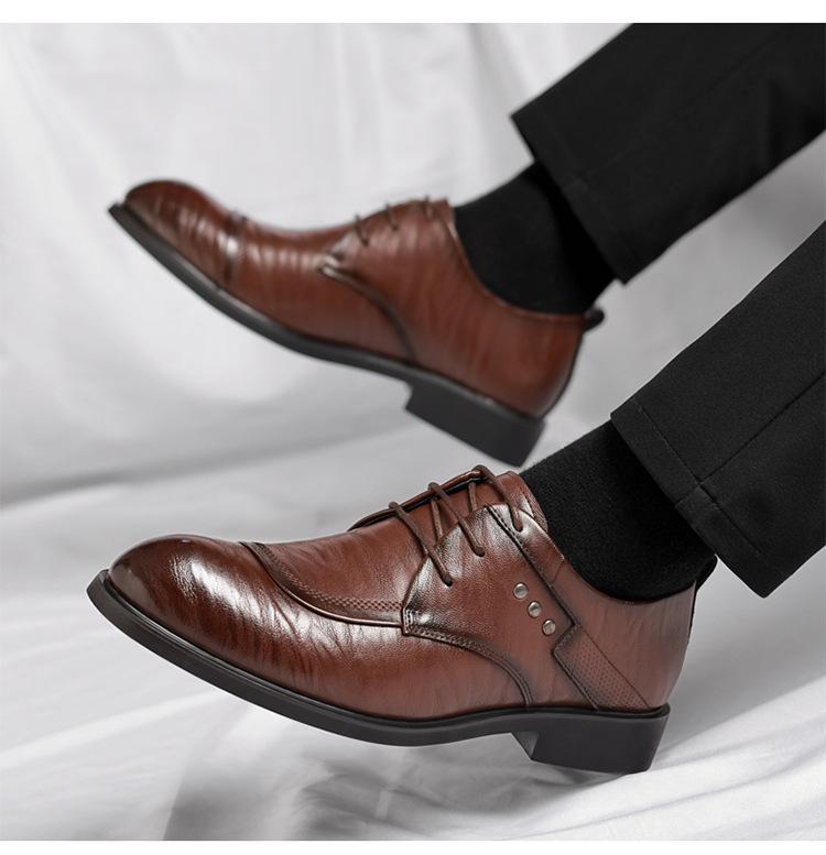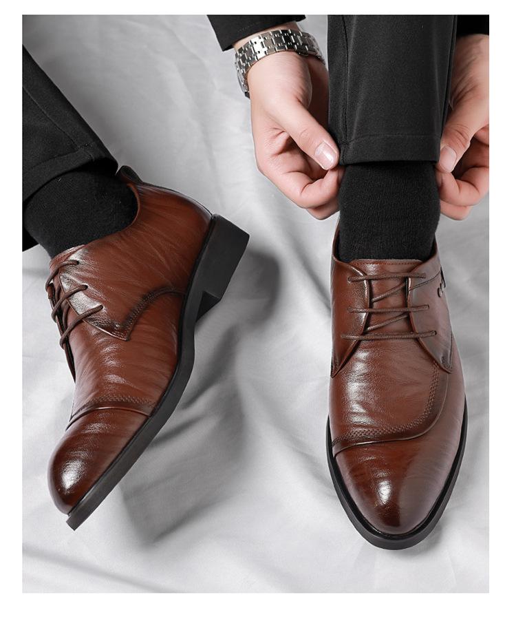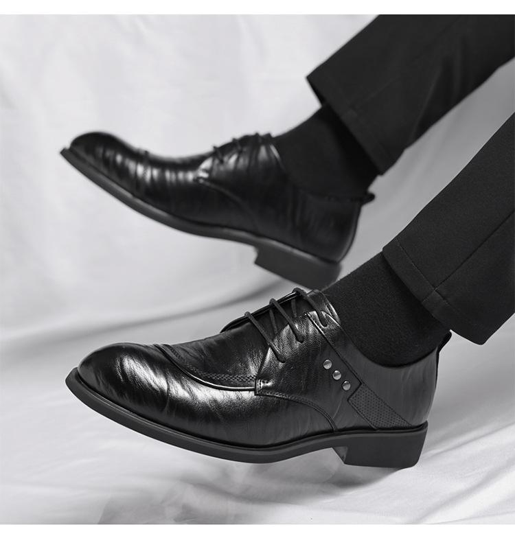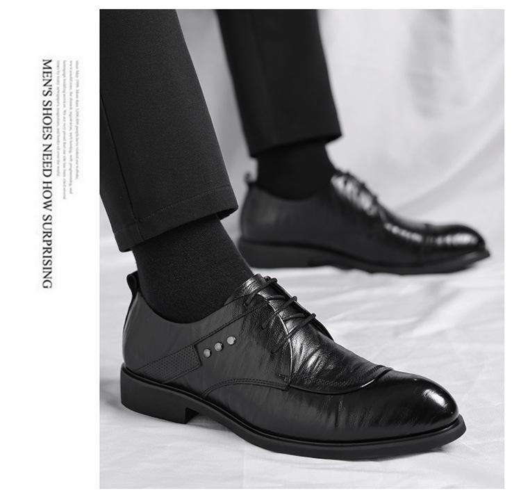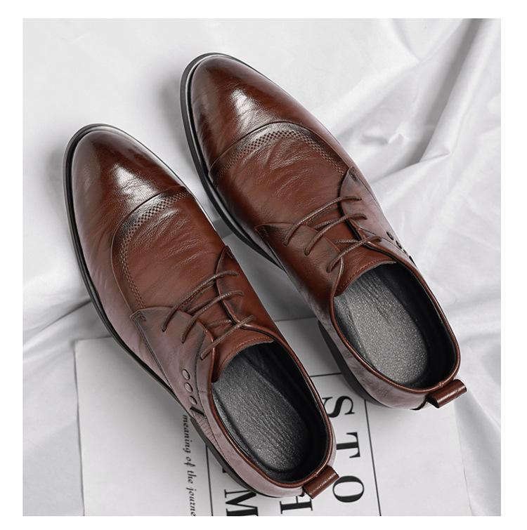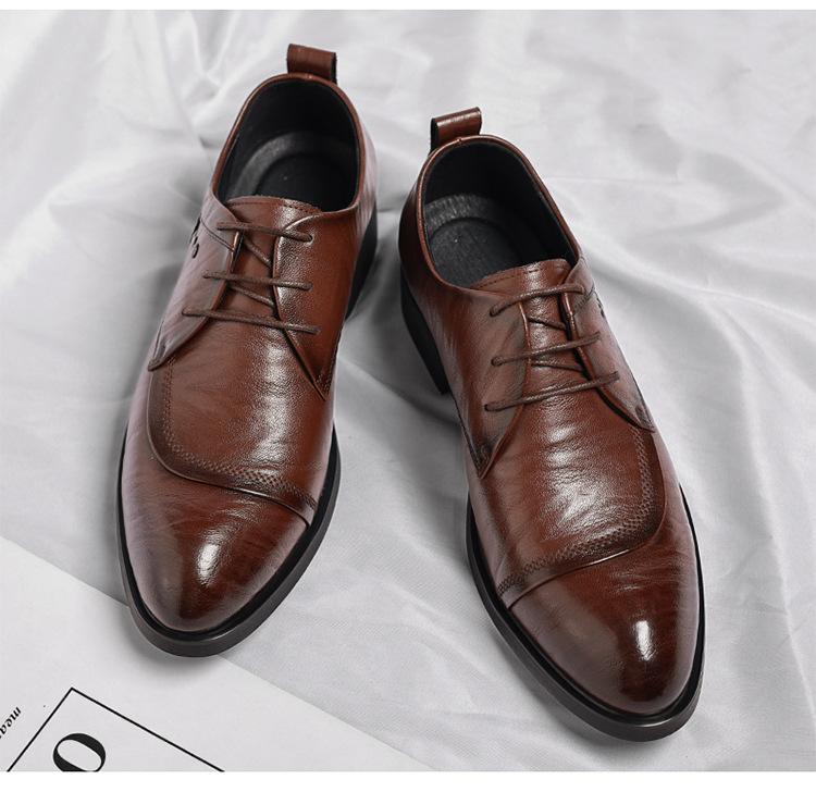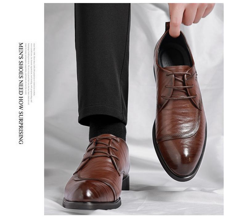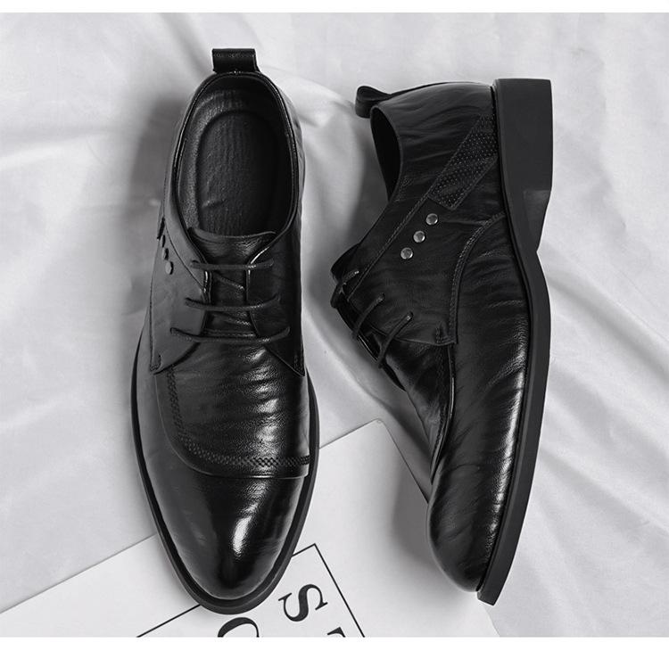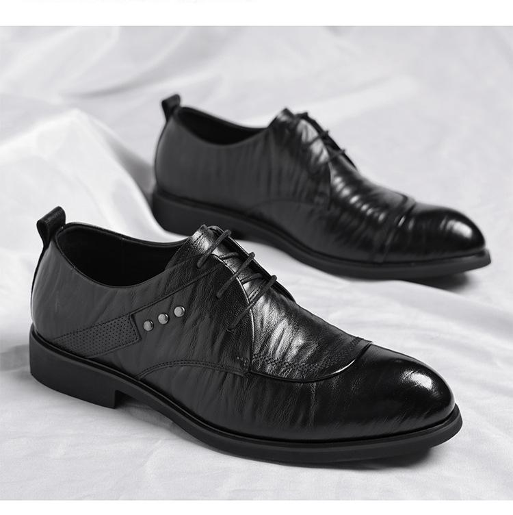 Sapatos de Couro Masculinos 2025 Outono Novo Sapatos Sociais Masculinos de Negócios Respiráveis Estilo Britânico Versátil Bico Fino Casamento Noivo