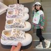 Tênis de Lona para Meninas 2024 Tênis de Solado Macio Infantil Tênis da Moda para Meninas para Crianças Mais Velhas Estilo Outono Floral Pintado à Mão