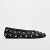 Outono 2024 Novos Sapatos Femininos Pretos Rebite Couro Ballet Flat Sapatos Casuais Raso Boca Plus Size Sapatos