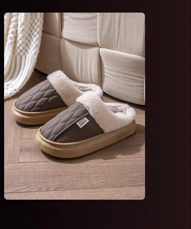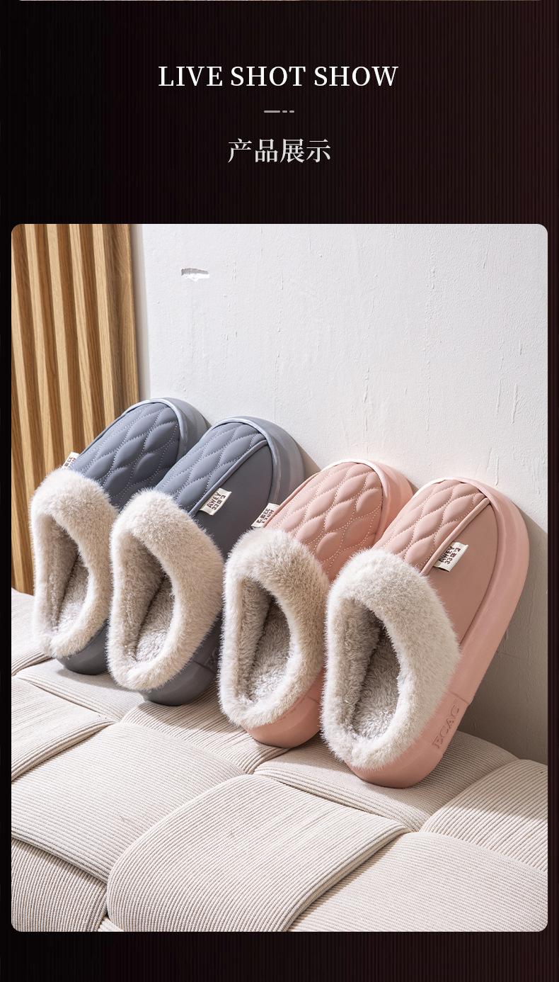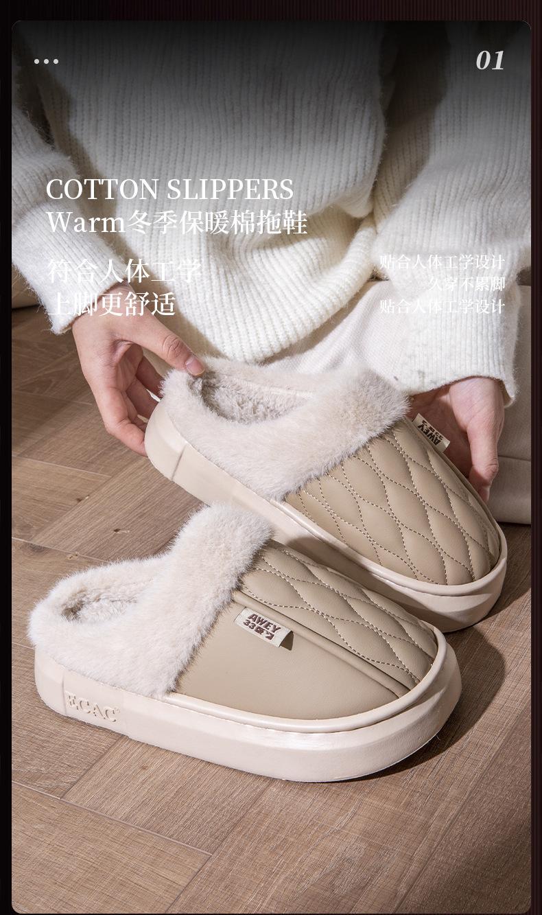 Compre Chinelos de algodão impermeáveis femininos outono e inverno 2024 novos amantes de casa interna fundo grosso antiderrapante chinelos de algodão PU para homens no atacado no Joom.pro