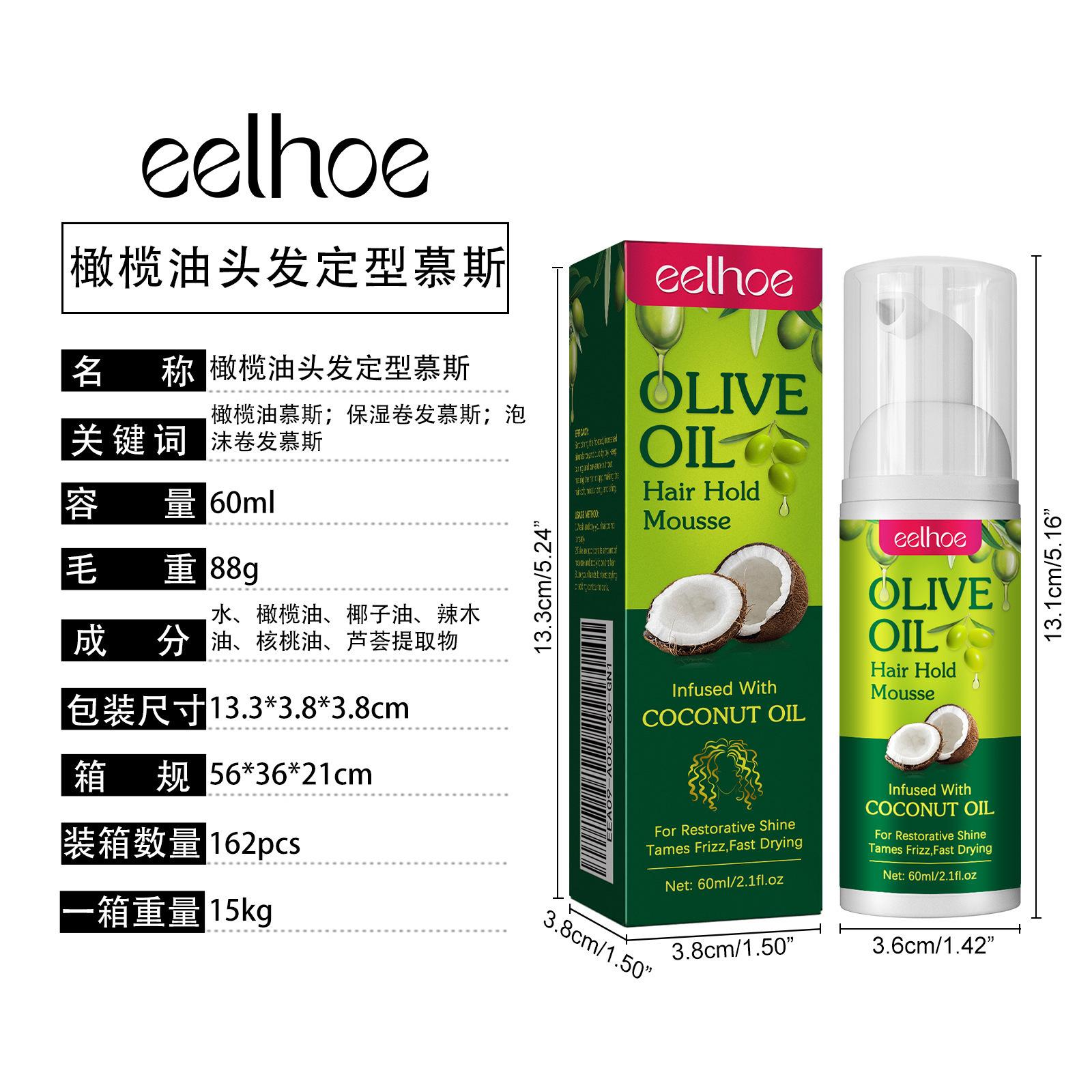 EELHOE azeite de oliva hair styling mousse cacheado penteado rolo hidratante mousse duradoura anti-frizz