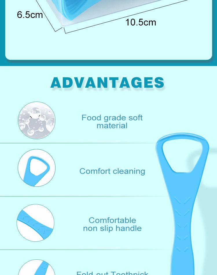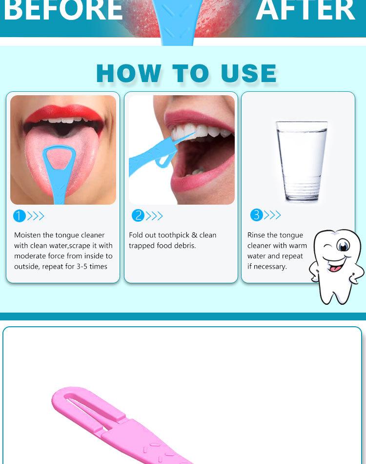 Escova de língua dobrável de cabeça dupla, palito de plástico, removedor de dentes, escova de língua, dois em um, caixa de limpeza oral, atacado internacional