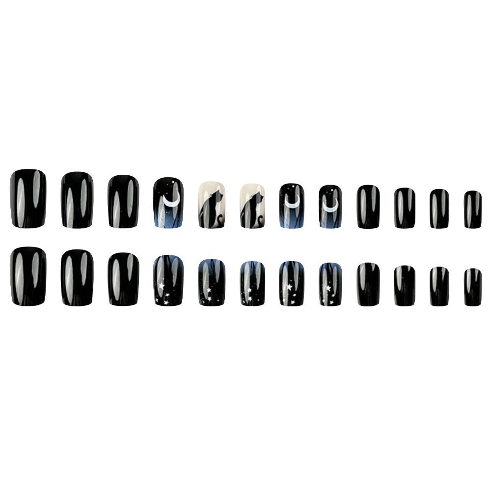 Comércio exterior remendo de unha vestível 24 peças de arte de unha use uma unha falsa de lua de gato unha removível atacado