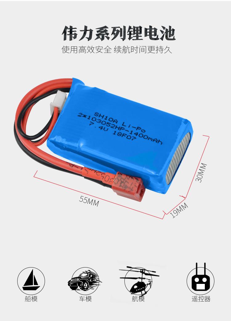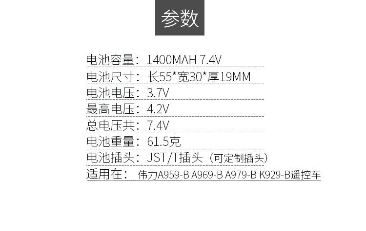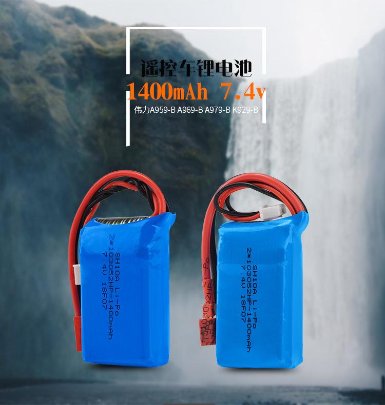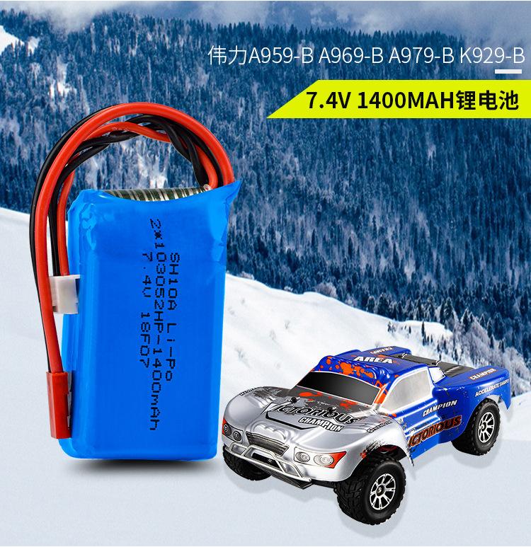 Aplicável a Weili A959-b A969-b A979-b K929-B bateria de lítio de carro de controle remoto 7,4 V 1400 mah