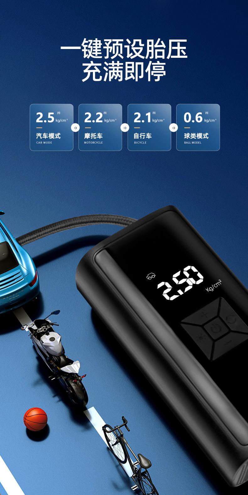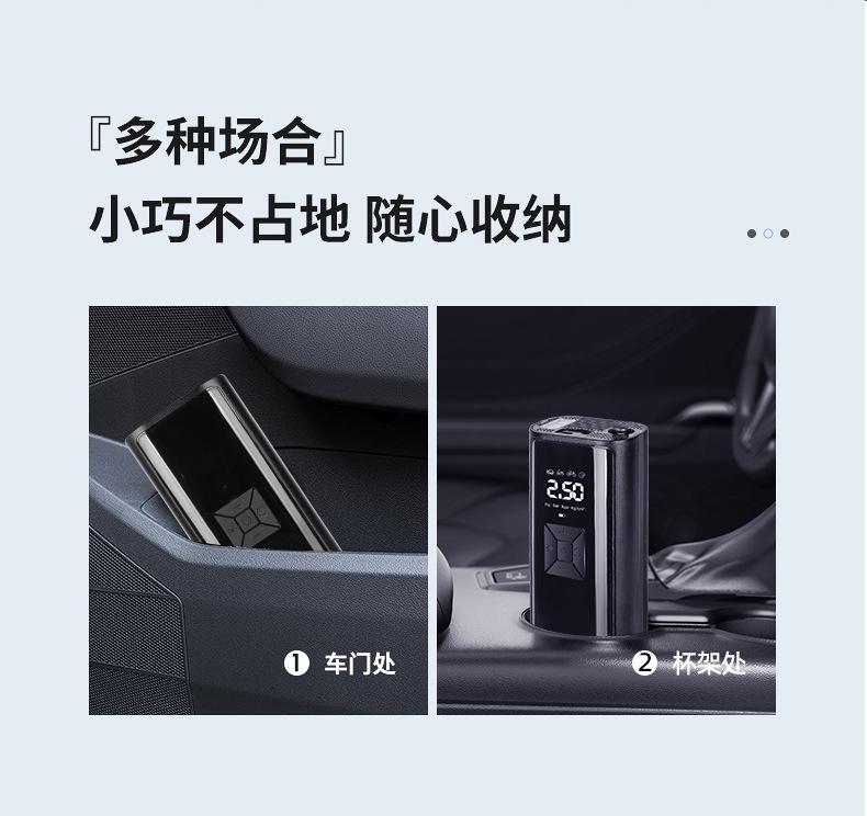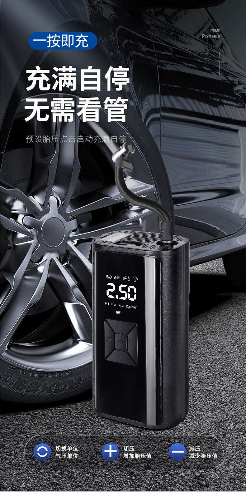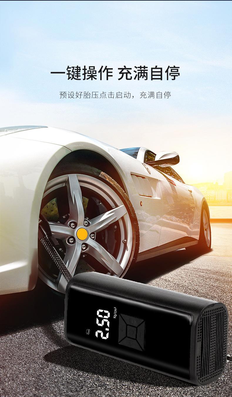 1. Bomba de ar portátil sem fio, faixa de inflação ilimitada, equipada com um motor de ímã permanente que pode encher pneus de carro muito rapidamente.