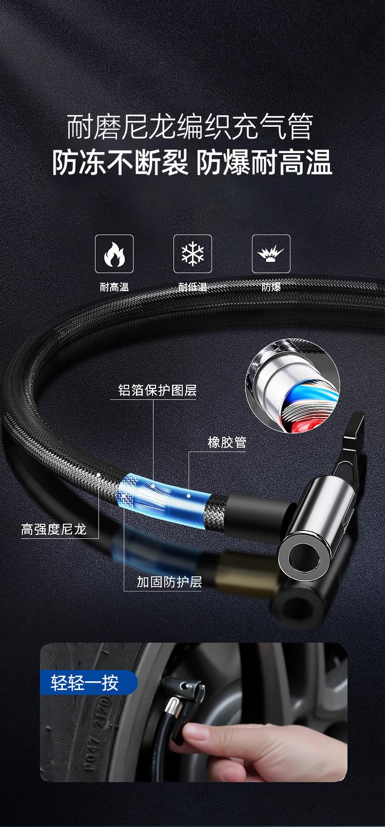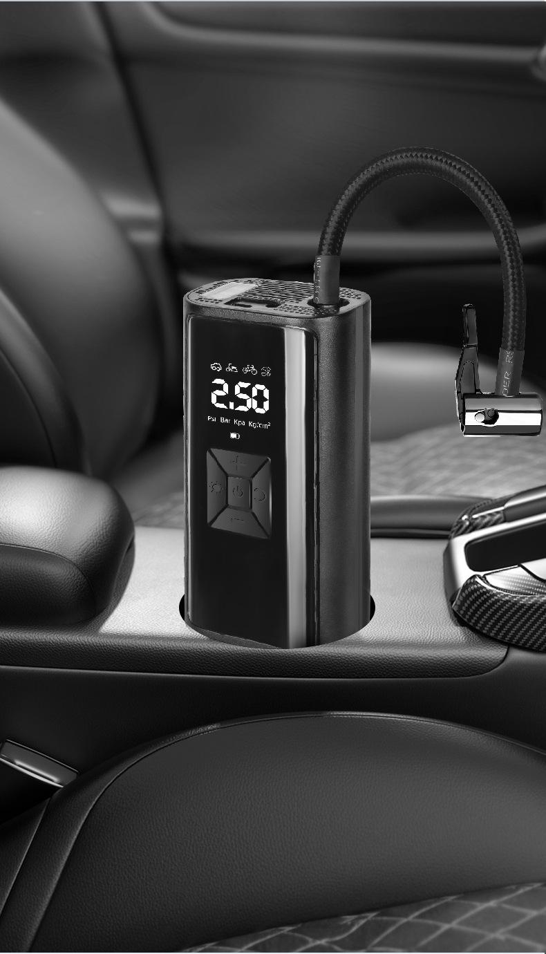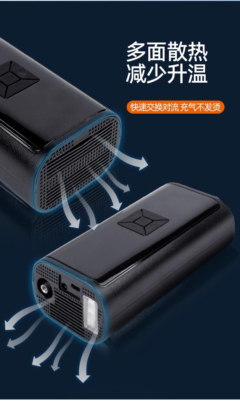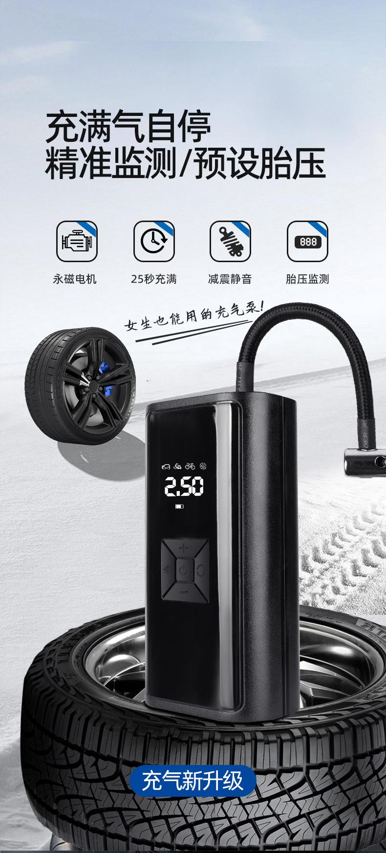1. Bomba de ar portátil sem fio, faixa de inflação ilimitada, equipada com um motor de ímã permanente que pode encher pneus de carro muito rapidamente.