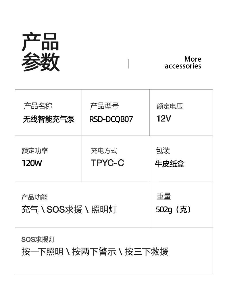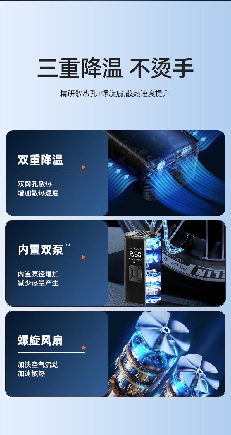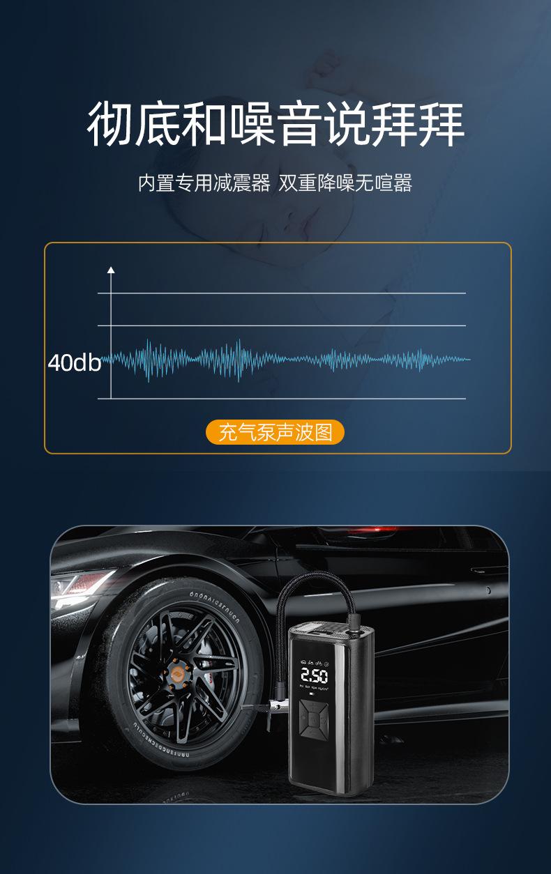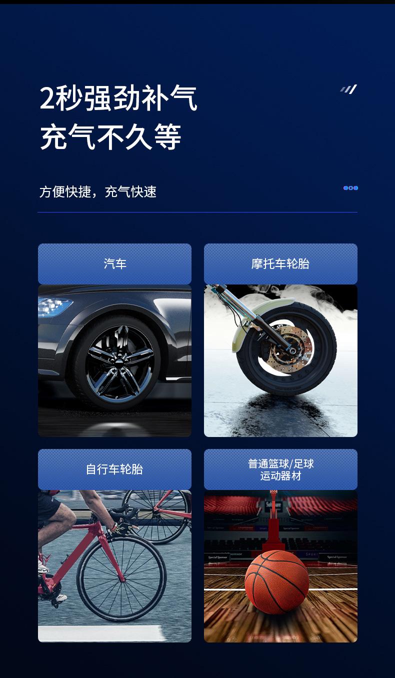 1. Bomba de ar portátil sem fio, faixa de inflação ilimitada, equipada com um motor de ímã permanente que pode encher pneus de carro muito rapidamente.