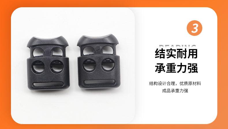 Fivela Plugue de Cordão Redondo com Furo Duplo Fivela Nariz de Porco Preto Fivela de Mola de Plástico Acessórios para Roupas e Bagagens Venda por Atacado no Local