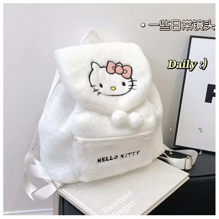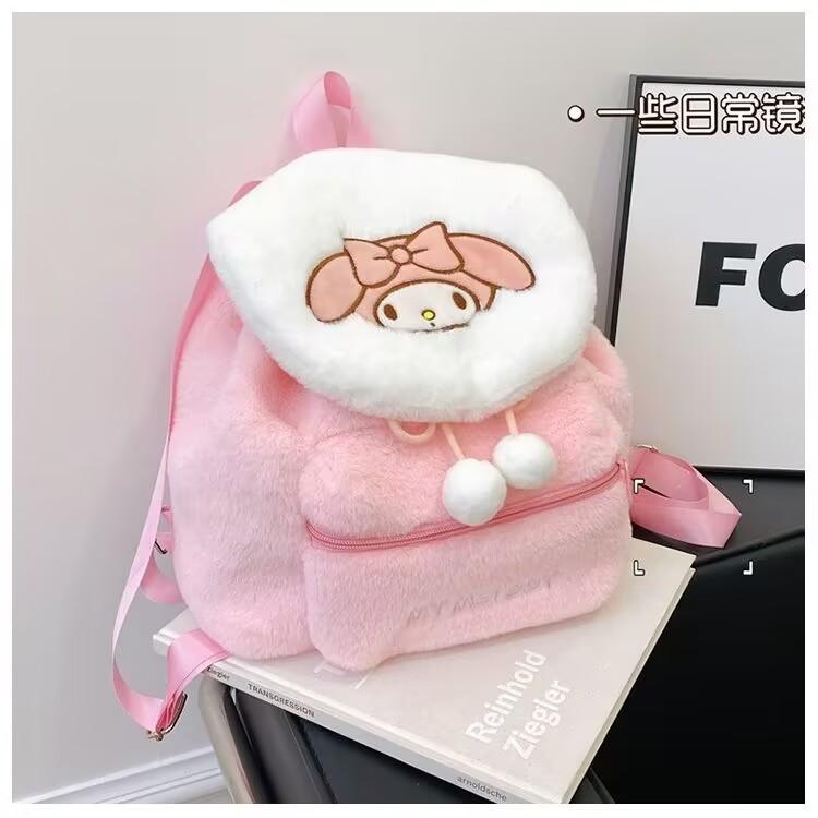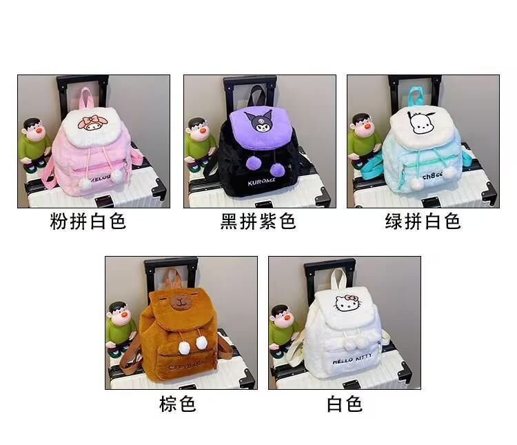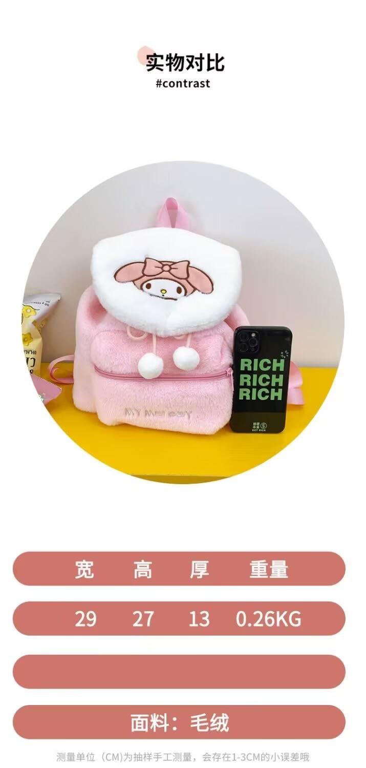 Mochila Escolar de Jardim de Infância Nova Mochila de Pelúcia Desenho Animado Bonito Sanrio Grande Capacidade Mochila de Proteção de Cume Leve para Alunos da Escola Primária