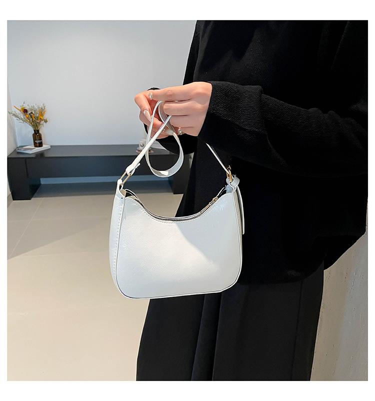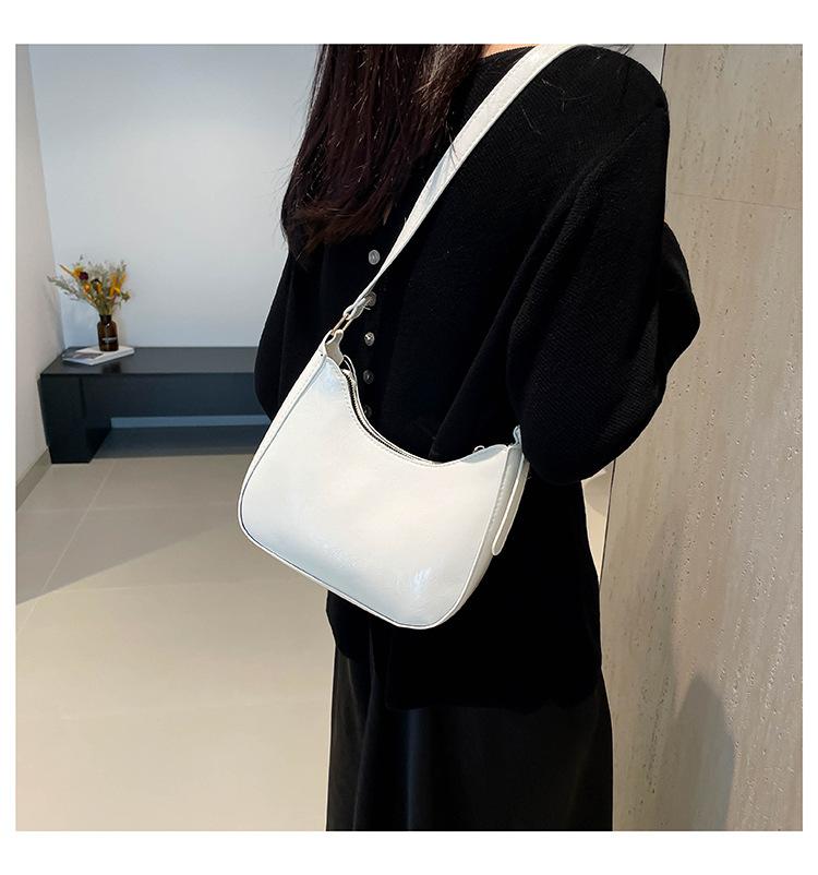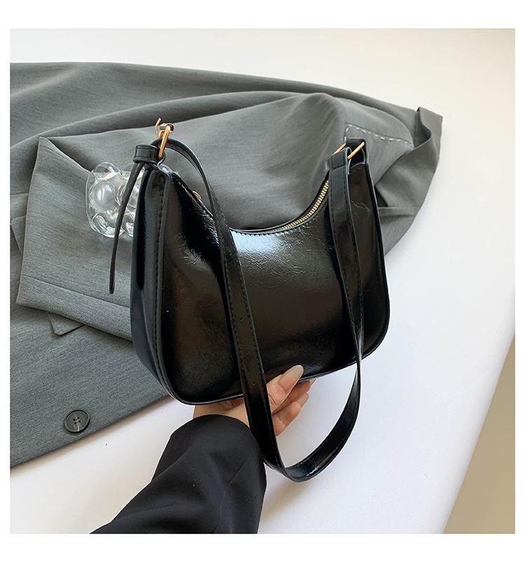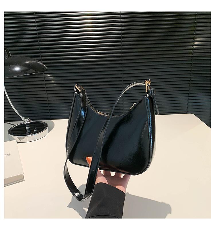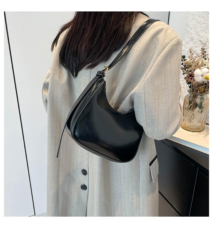 Bolsa Retrô Estilo Hong Kong 2025 Novo Estilo Estilo Estrangeiro Fashionável Ombro Único Axila Transversal Meia Lua