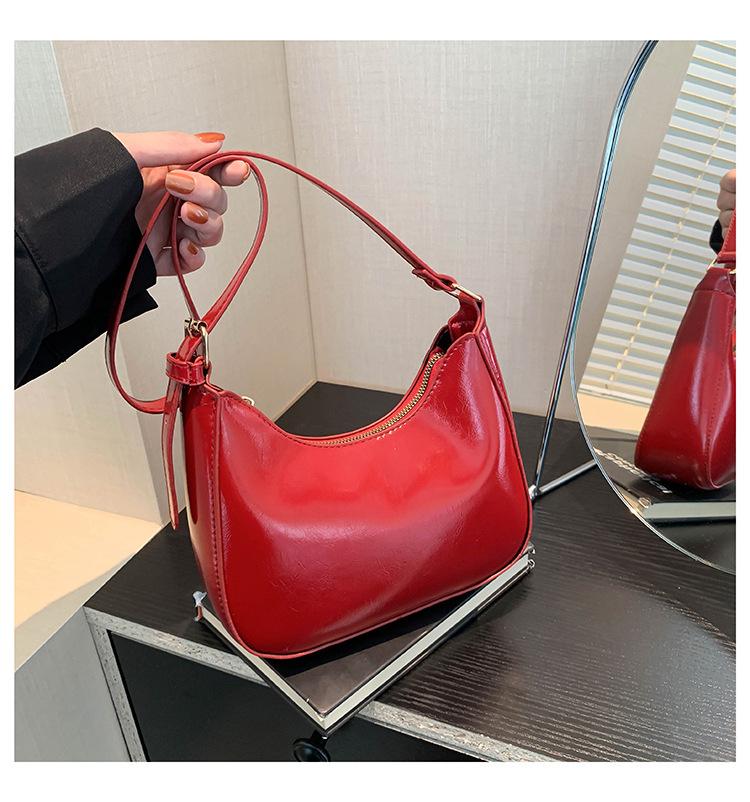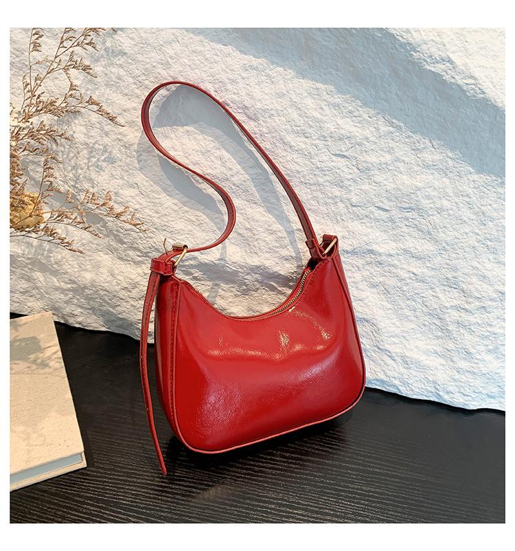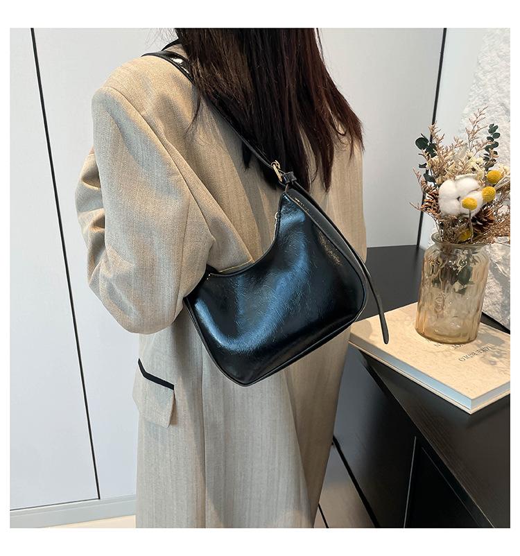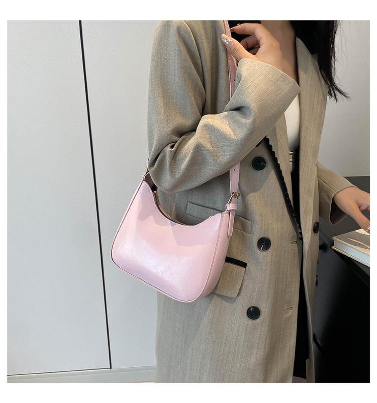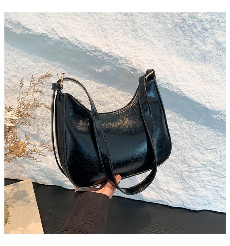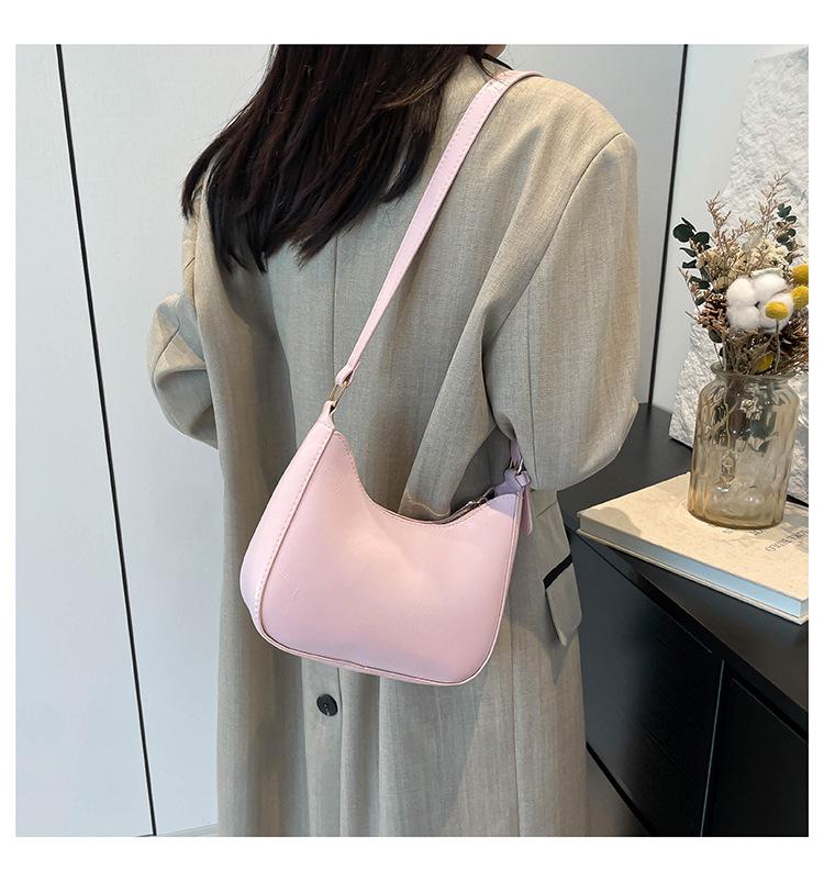 Bolsa Retrô Estilo Hong Kong 2025 Novo Estilo Estilo Estrangeiro Fashionável Ombro Único Axila Transversal Meia Lua