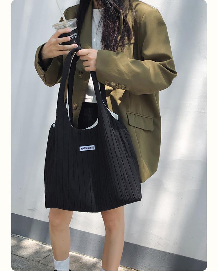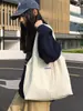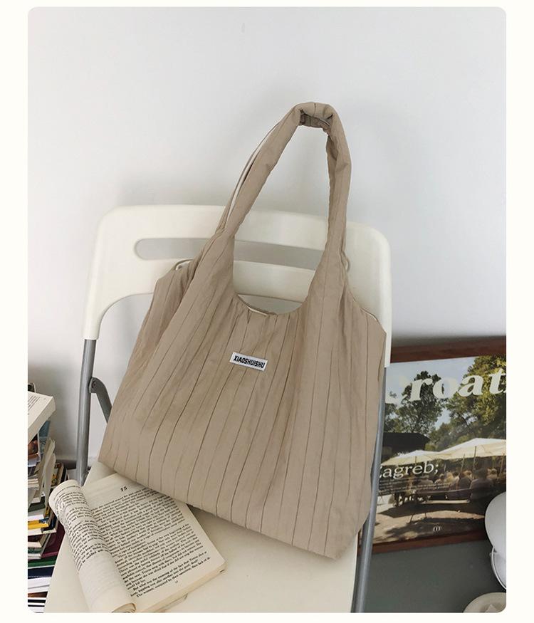 Grande Capacidade Bolsa Tote Feminina 2024 Novo Estilo Casual Estilo Listrado Bolsa Feminina Estilo Japonês Simples Bolsa de Ombro Casual Bolsa de Pano