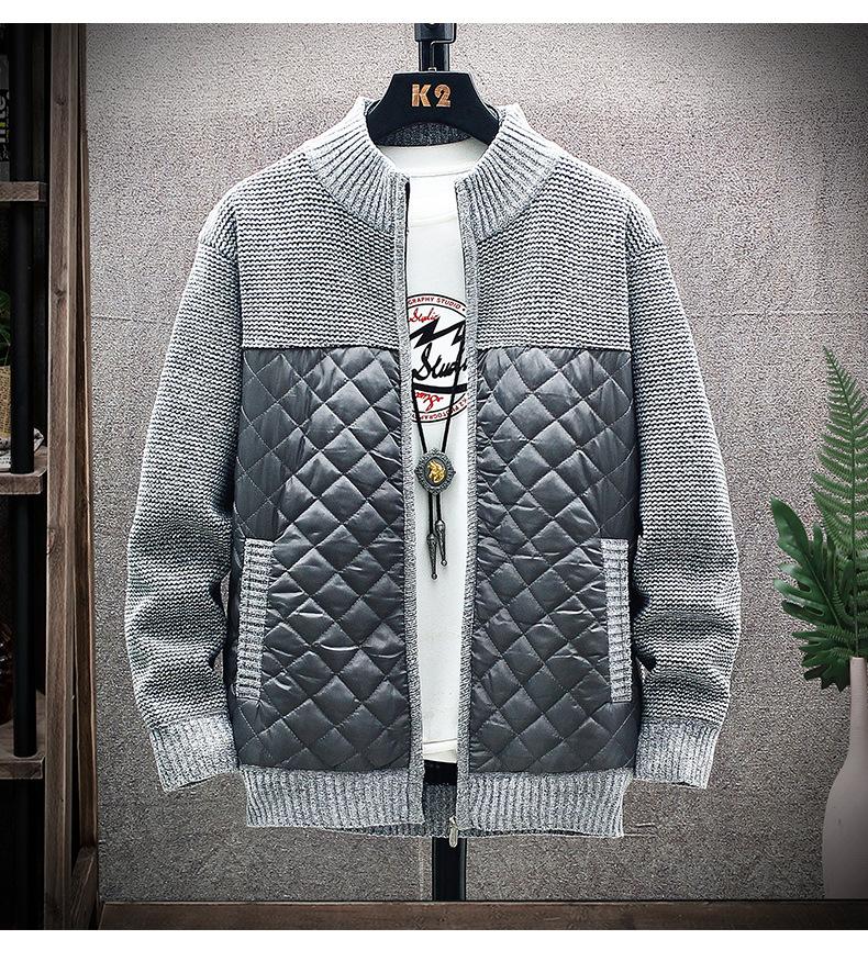 Suéter acolchoado de veludo de meia-idade e idosos jaqueta masculina AliExpress comércio exterior tamanho grande casaco gola alta costura outono e inverno jaqueta acolchoada de algodão
