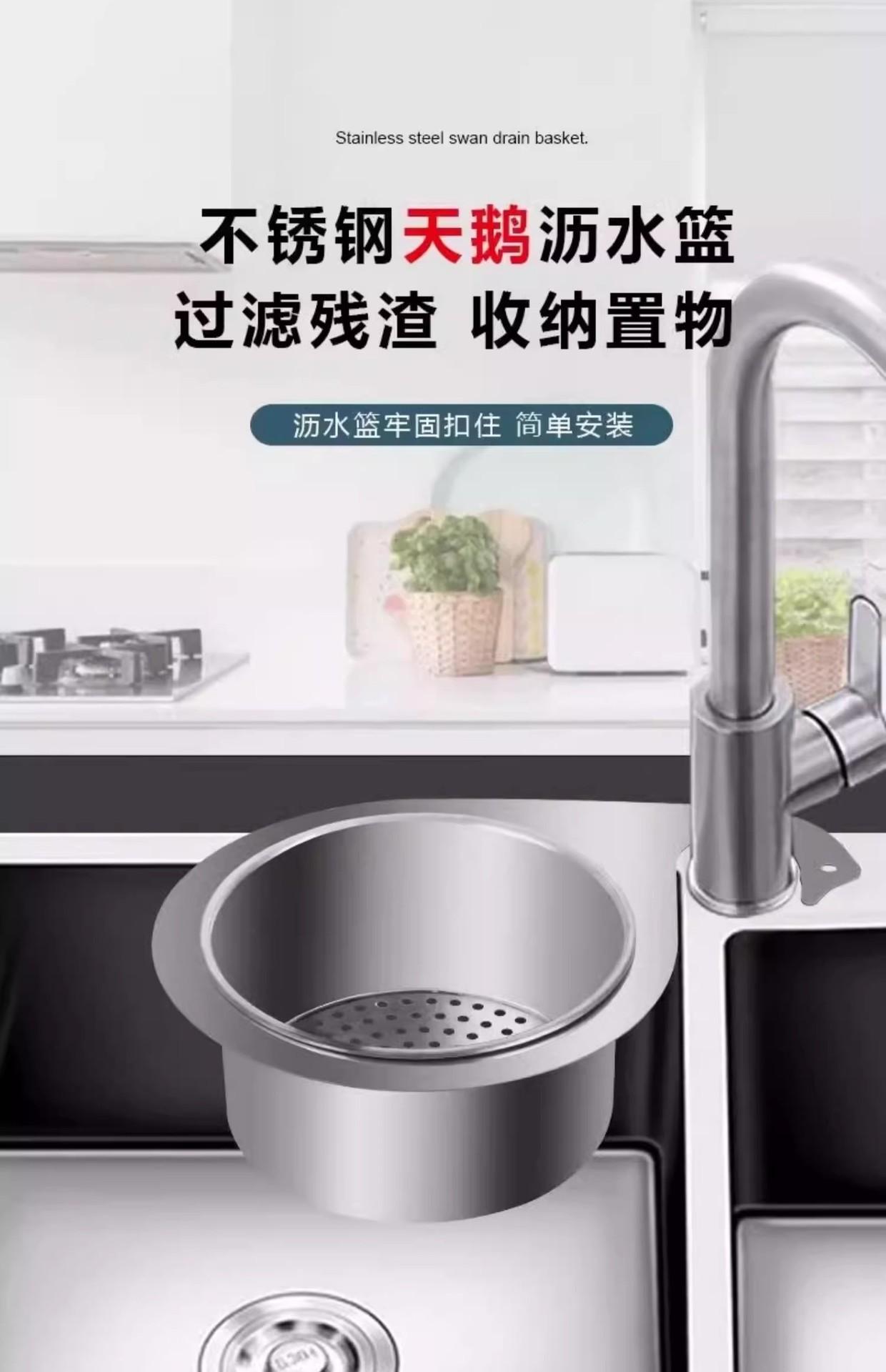 Cesta de drenagem de pia de cisne, aço inoxidável, cozinha, pendurado, armazenamento, escorredor, gancho de separação úmida e seca, filtro de lixo