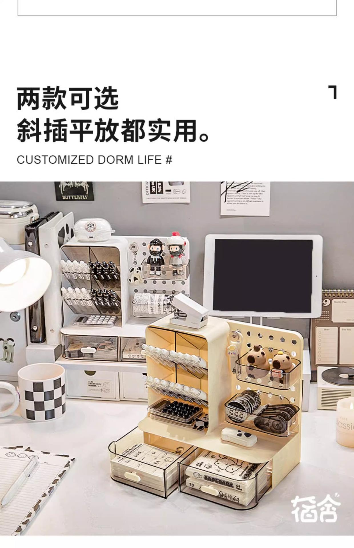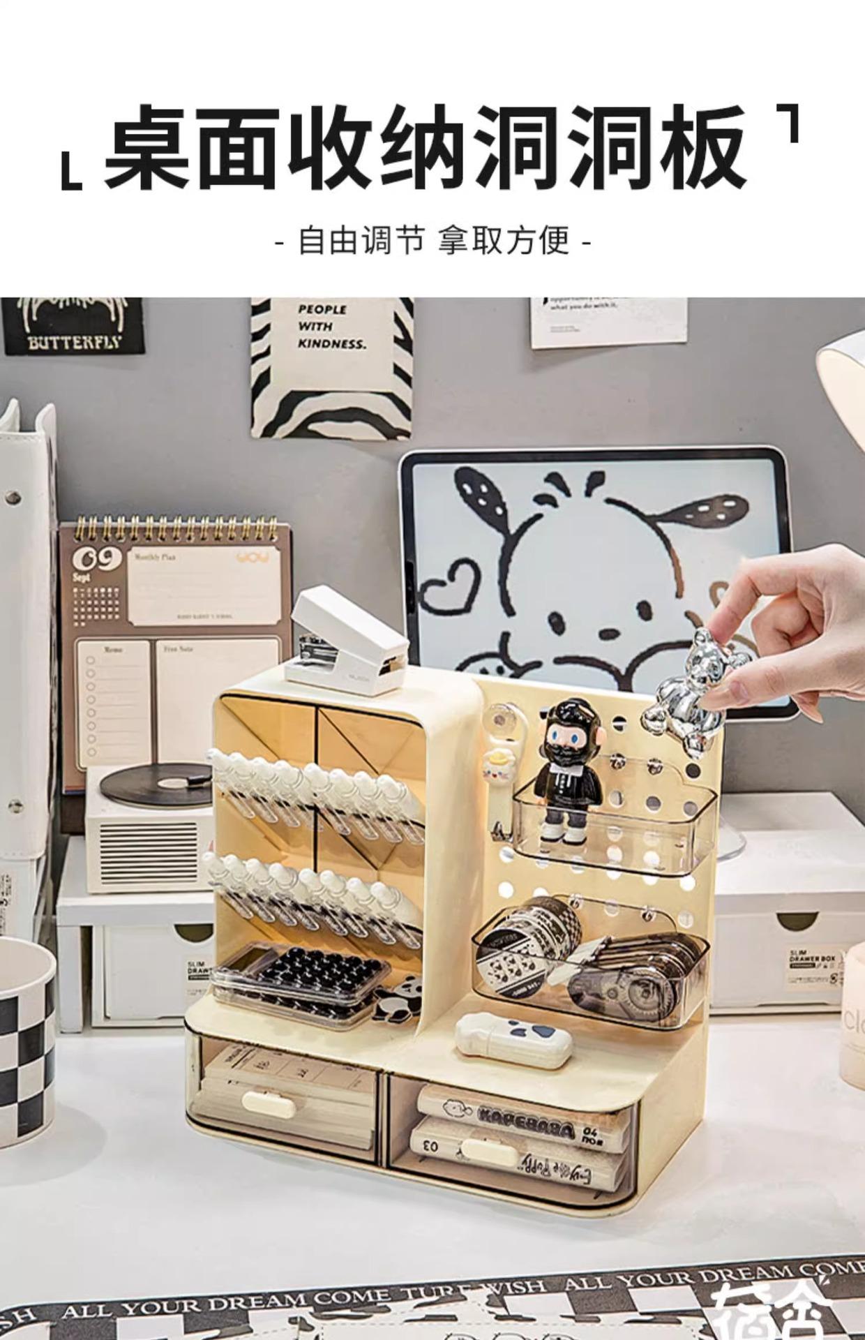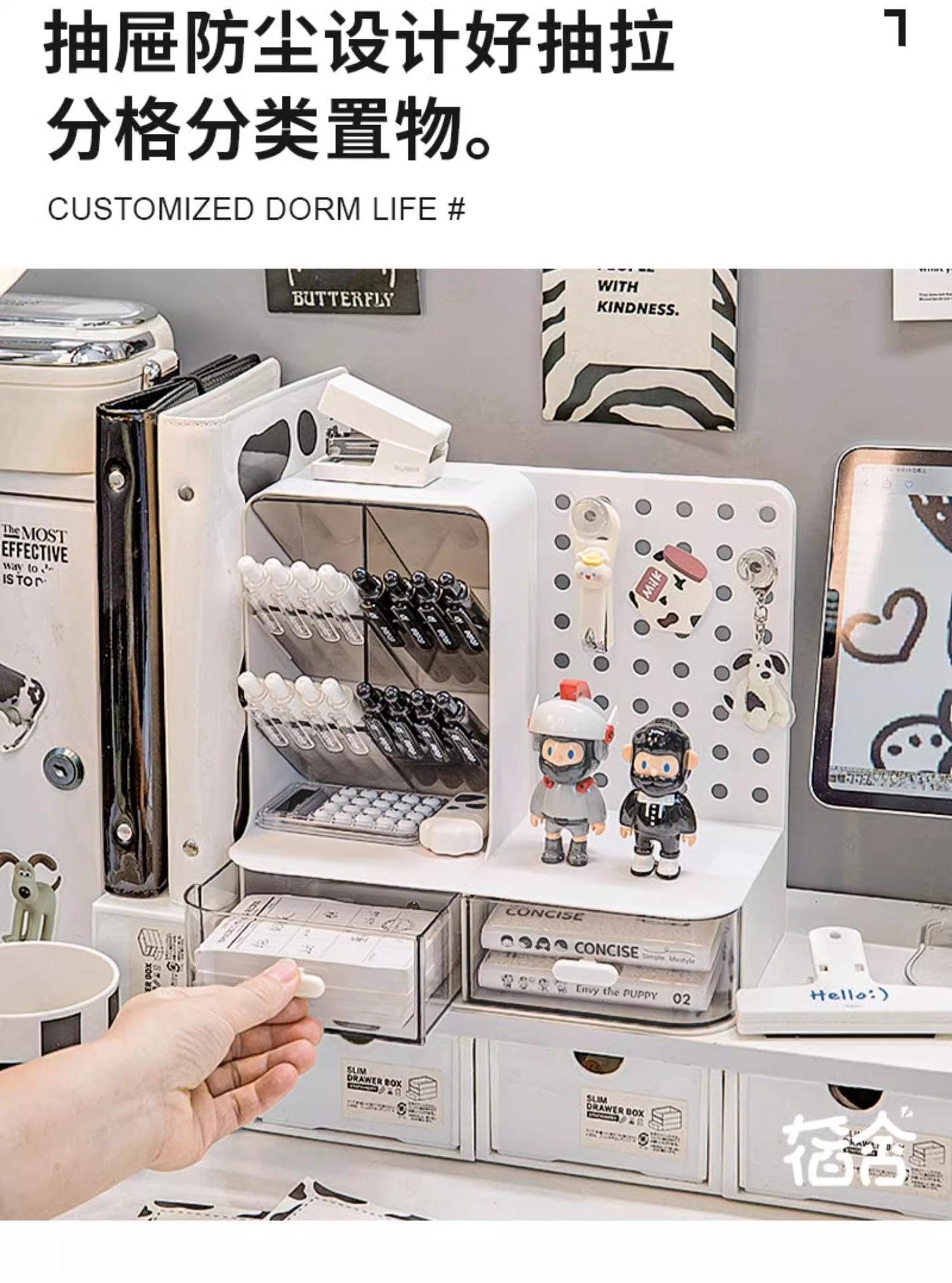 Caixa de armazenamento de placa de furo criativo de alto valor gostoso display portátil oblíquo suporte para caneta com gaveta suporte de armazenamento de papelaria