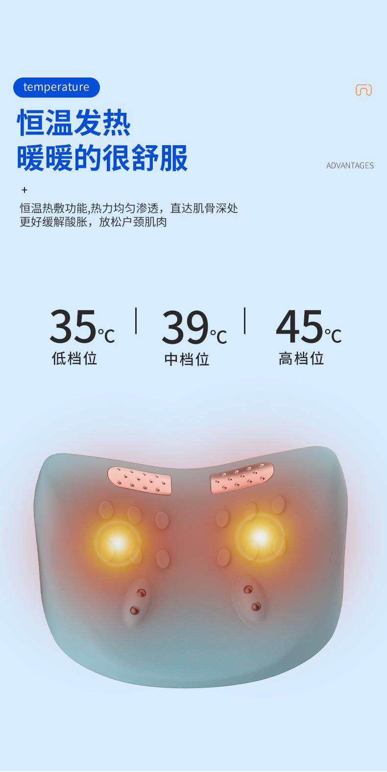 Massageador de Ombro e Pescoço, Almofada de Massagem para a Coluna Cervical, Massageador Elétrico Portátil para Pescoço com Amassamento para Carro/Casa, Compressão Quente EMS para Pescoço e Coluna Lombar