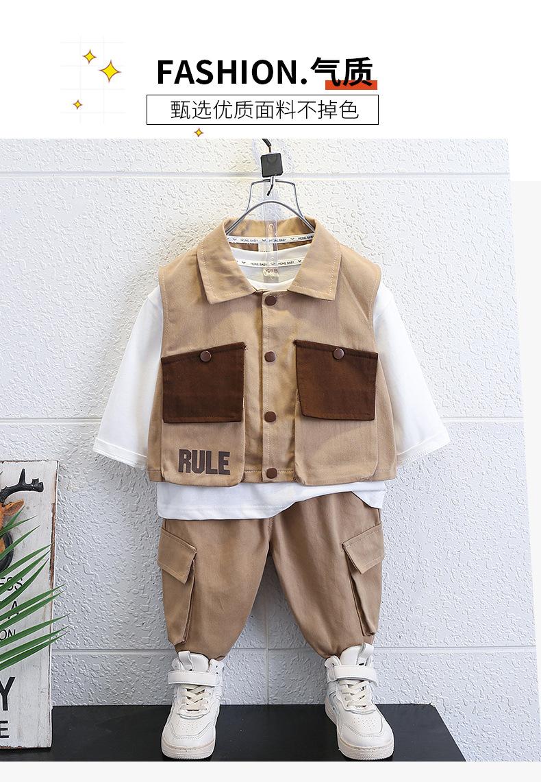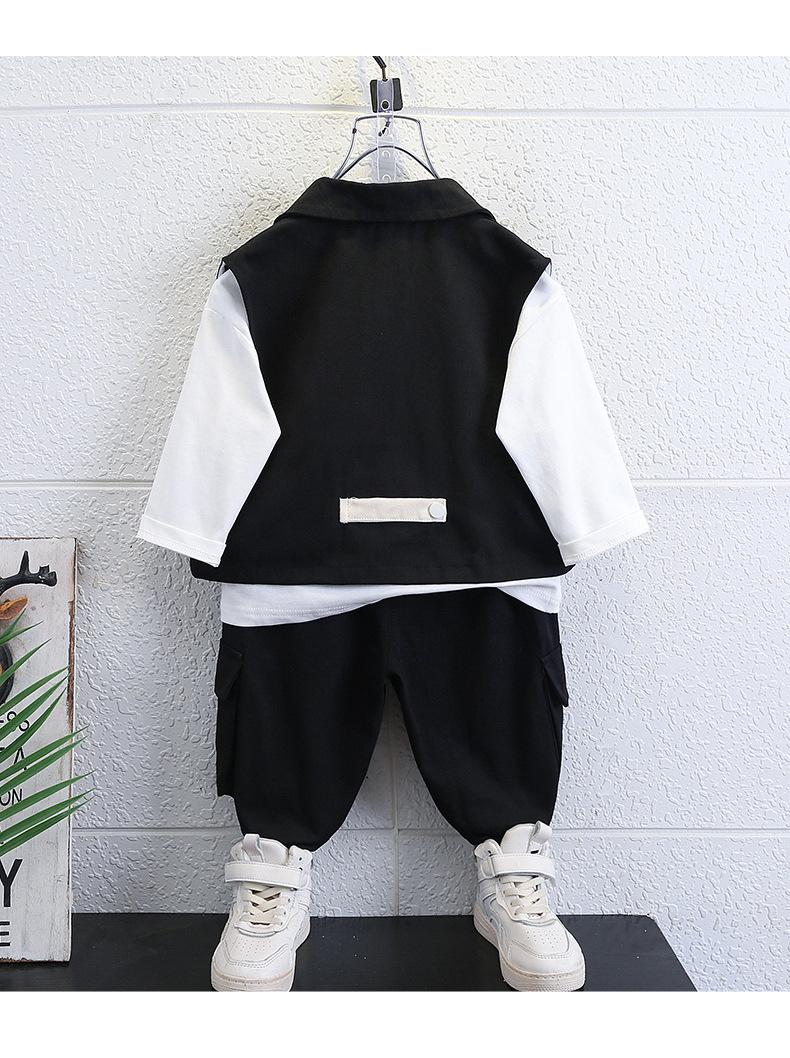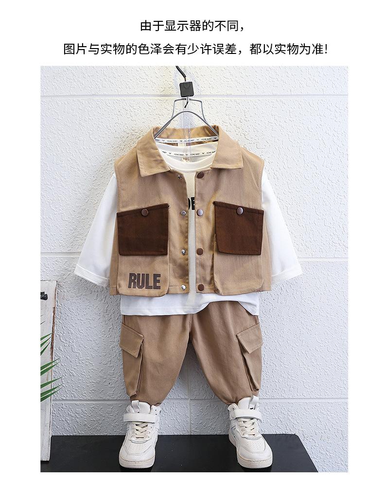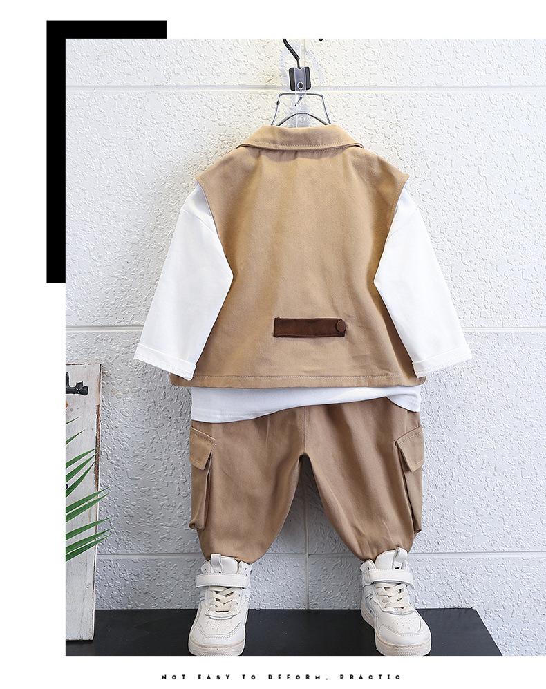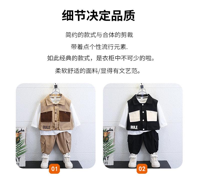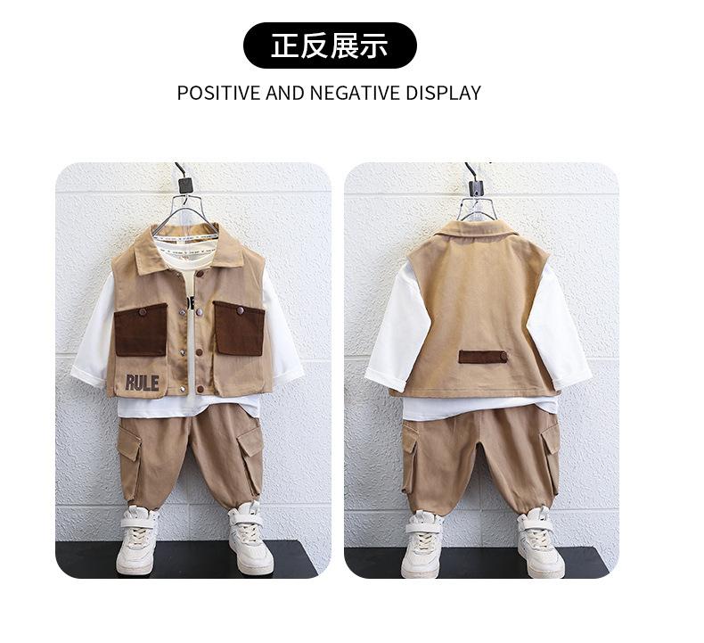 Colete de outono para meninos 2024 Outono Nova primavera e outono infantil estilo coreano ocidental roupas de bebê de três peças
