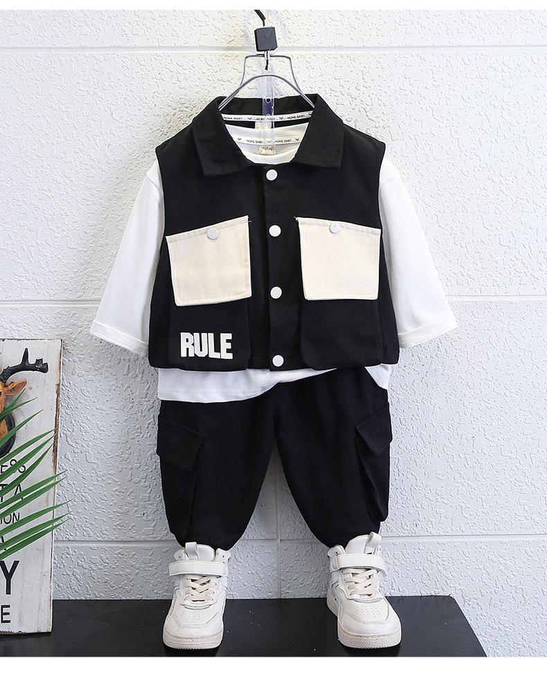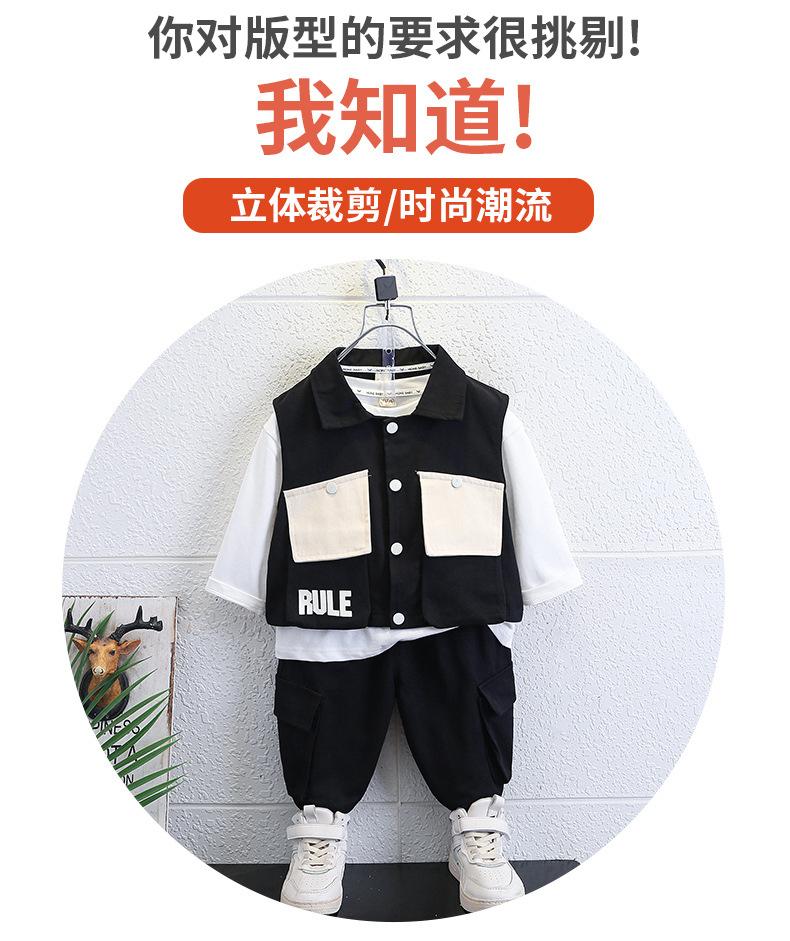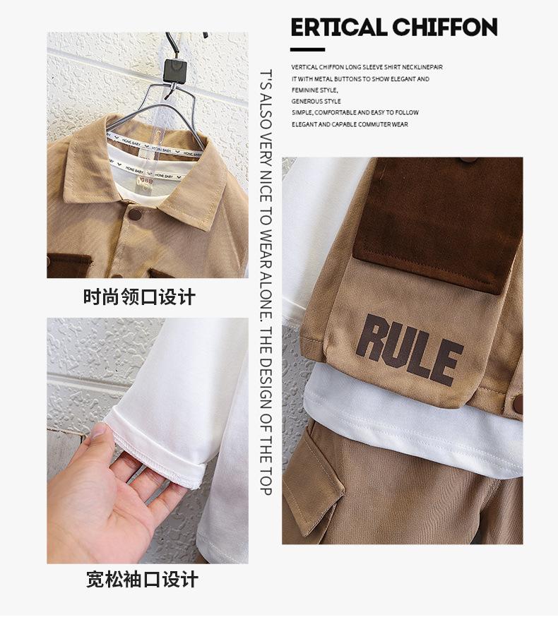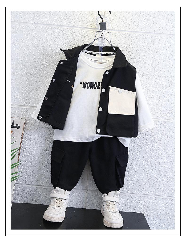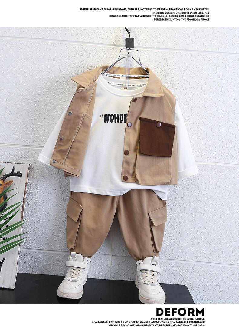 Colete de outono para meninos 2024 Outono Nova primavera e outono infantil estilo coreano ocidental roupas de bebê de três peças