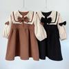 Vestidos de Menina Primavera 2025 Manga Longa Roupas da Moda Primavera e Outono Estilo Universitário Saias para Crianças e Crianças de Meia-Idade