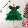 Vestido de natal transfronteiriço vestido infantil vestido de princesa lantejoulas manga bolha saia bufante traje infantil em estoque