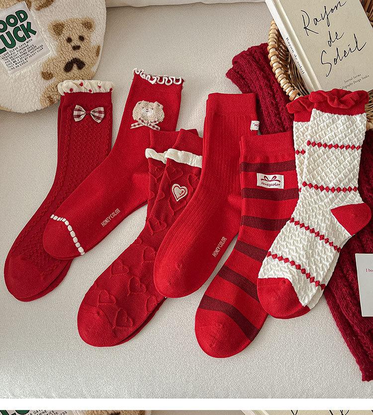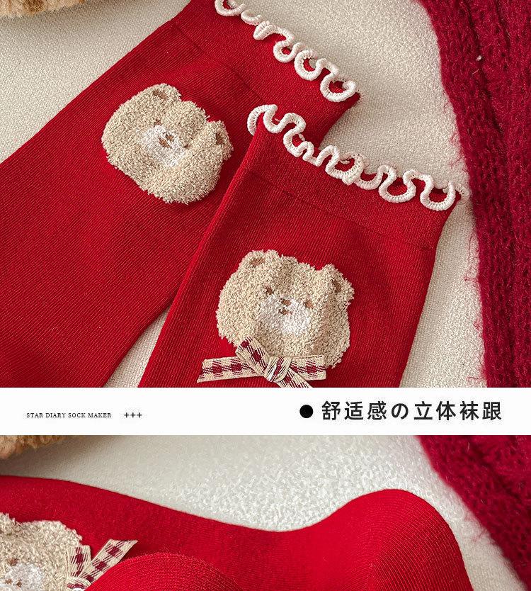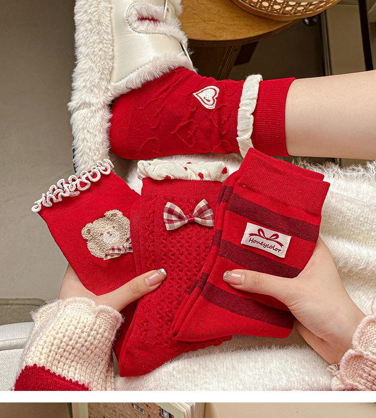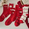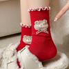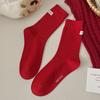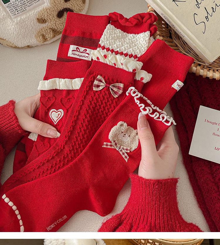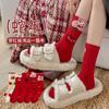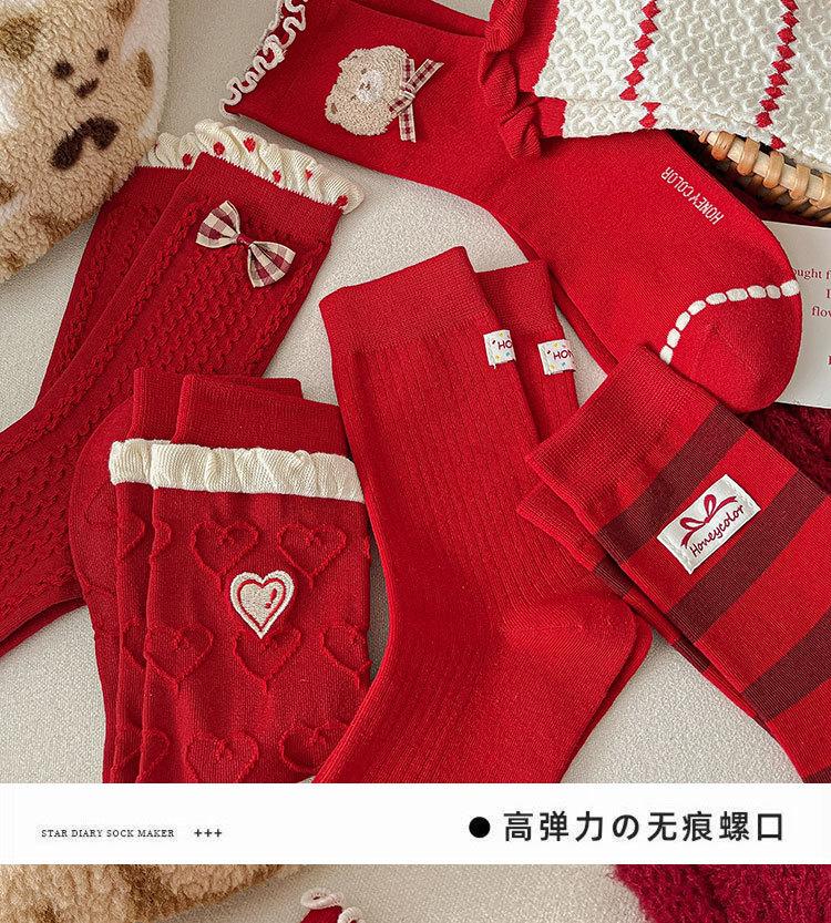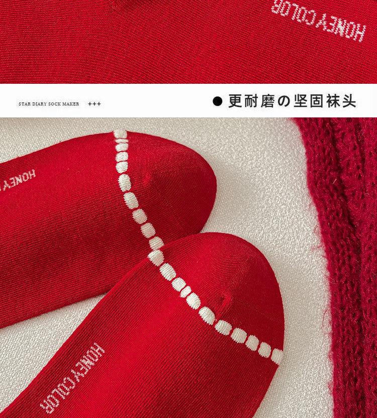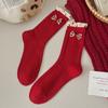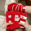 Novas meias vermelhas femininas meias de meio de ano para o ano novo outono e inverno meias de algodão festivas vermelhas grandes de desenho animado para mulheres