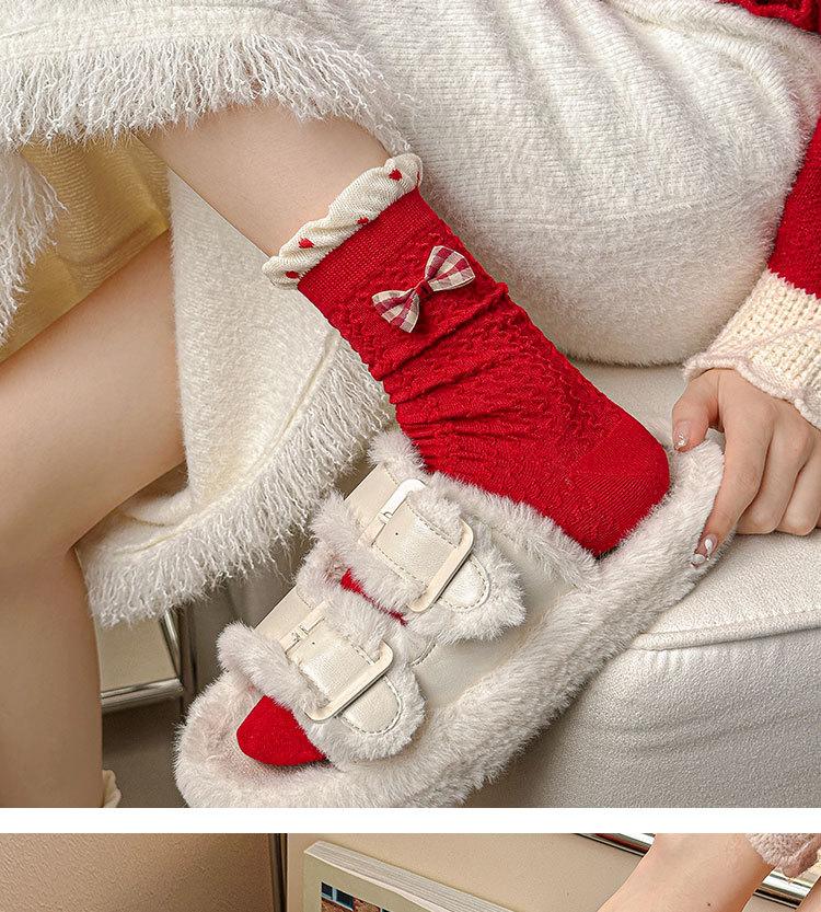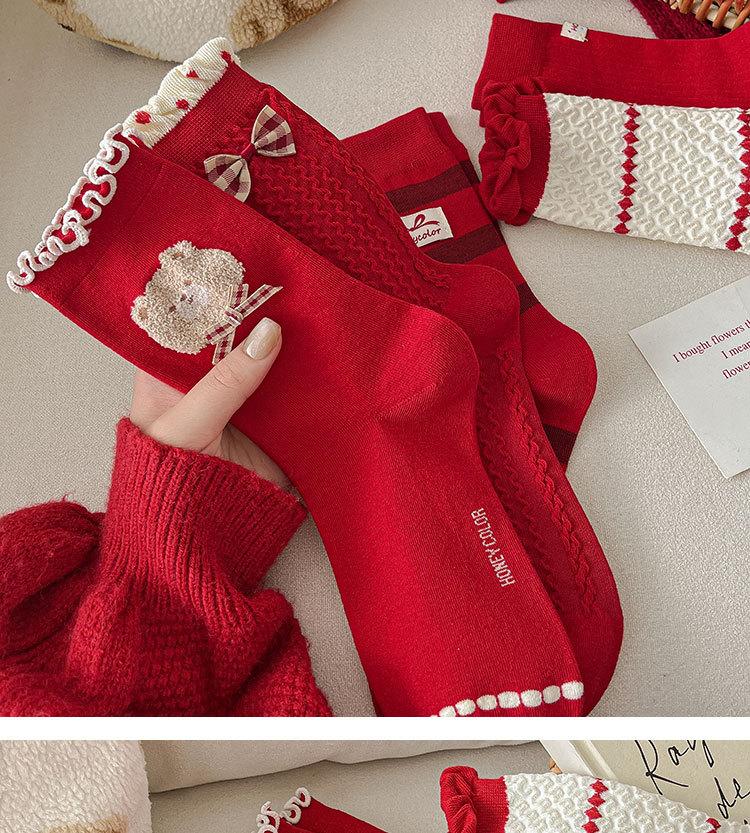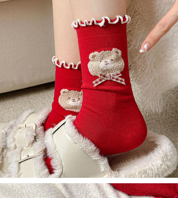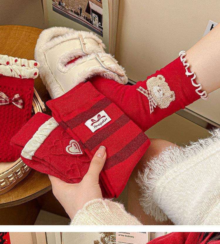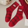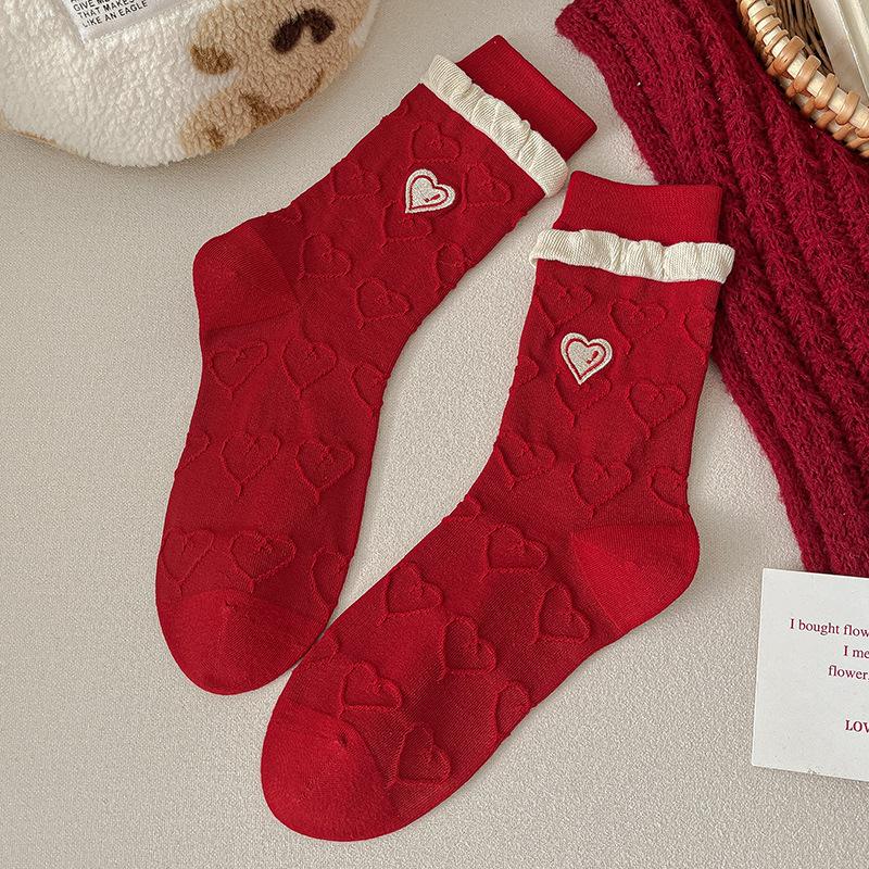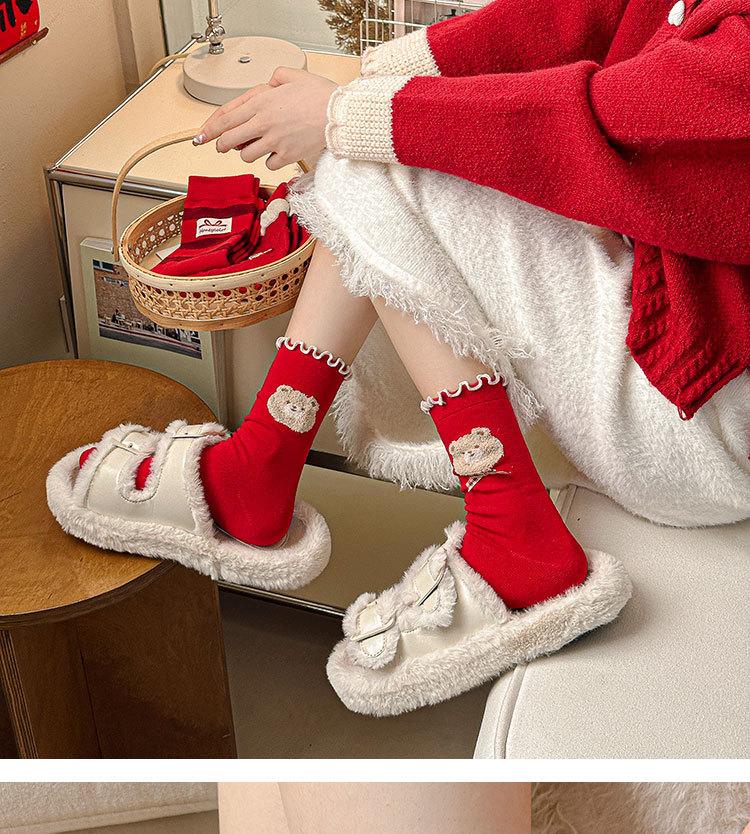 Novas meias vermelhas femininas meias de meio de ano para o ano novo outono e inverno meias de algodão festivas vermelhas grandes de desenho animado para mulheres