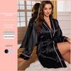 Denny Lyndon Europa Estilo Americano Moda Longa Camisola de Seda Gelada Feminina Fina Simples Casual Roupas de Casa Sexy Cardigan Roupão de Banho