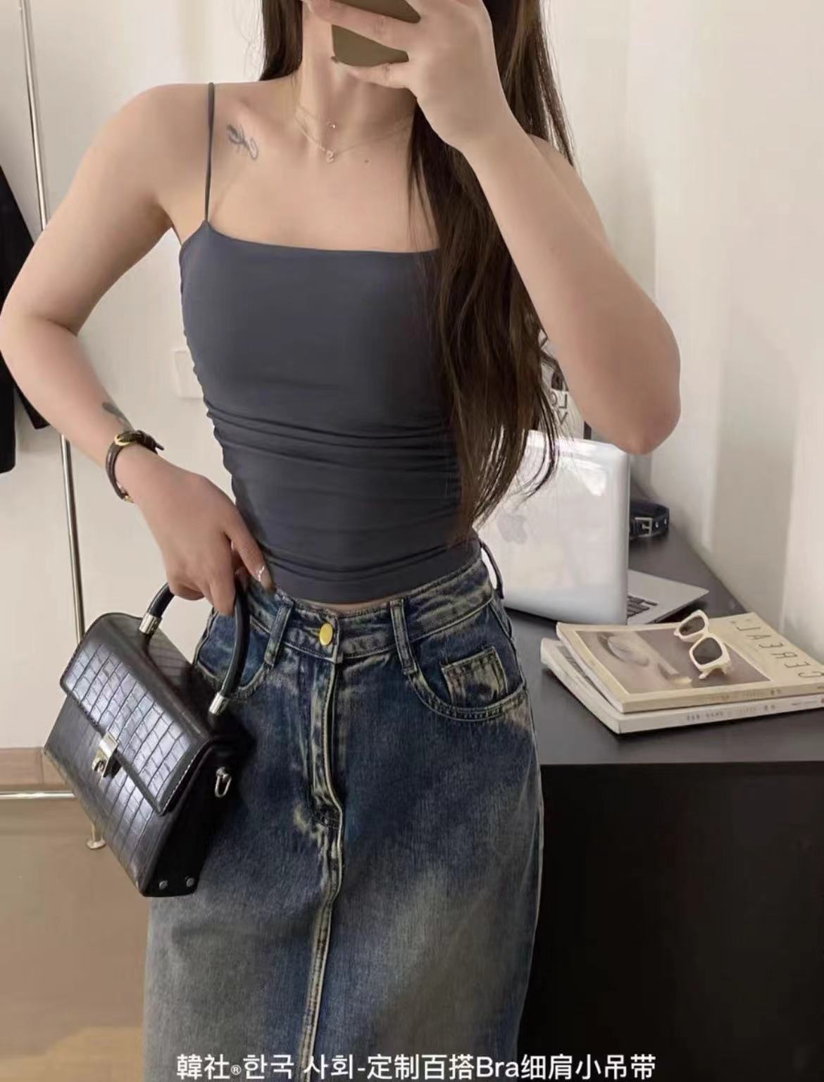 Camisola plissada pura popular, roupa externa doce e quente para meninas, roupa íntima feminina de verão emagrecedora com bojo no peito, top sem mangas com costas bonitas