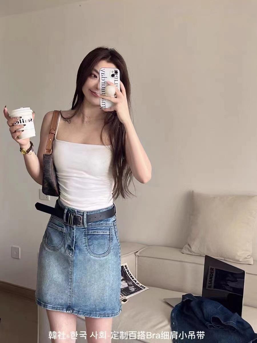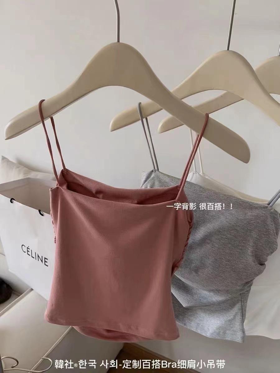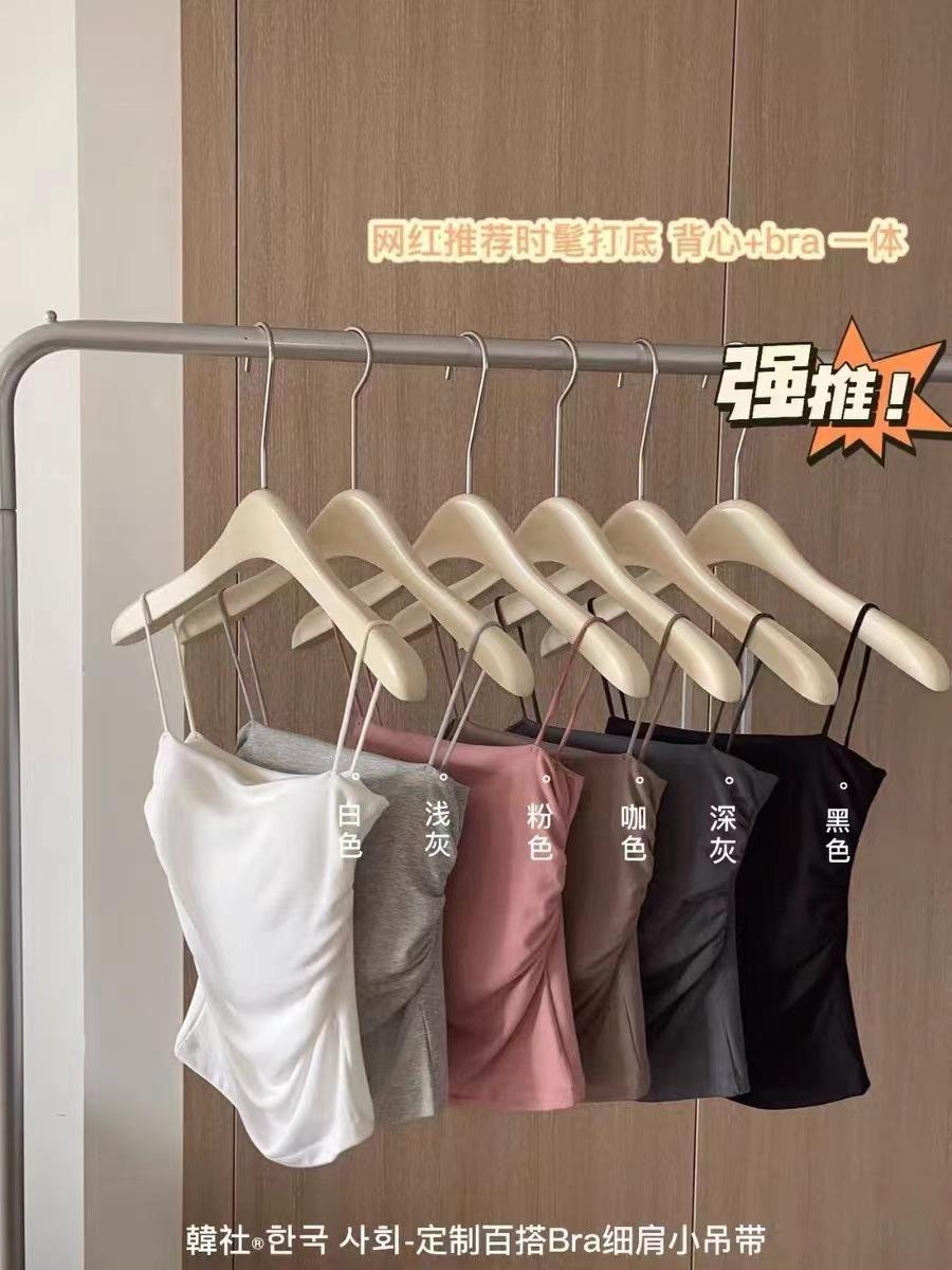 Compre Camisola plissada pura popular, roupa externa doce e quente para meninas, roupa íntima feminina de verão emagrecedora com bojo no peito, top sem mangas com costas bonitas no atacado no Joom.pro