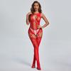 Europeu e americano sexy lingerie colete aberto virilha macacão malha oco pura paixão suspensórios sem mangas conjunto