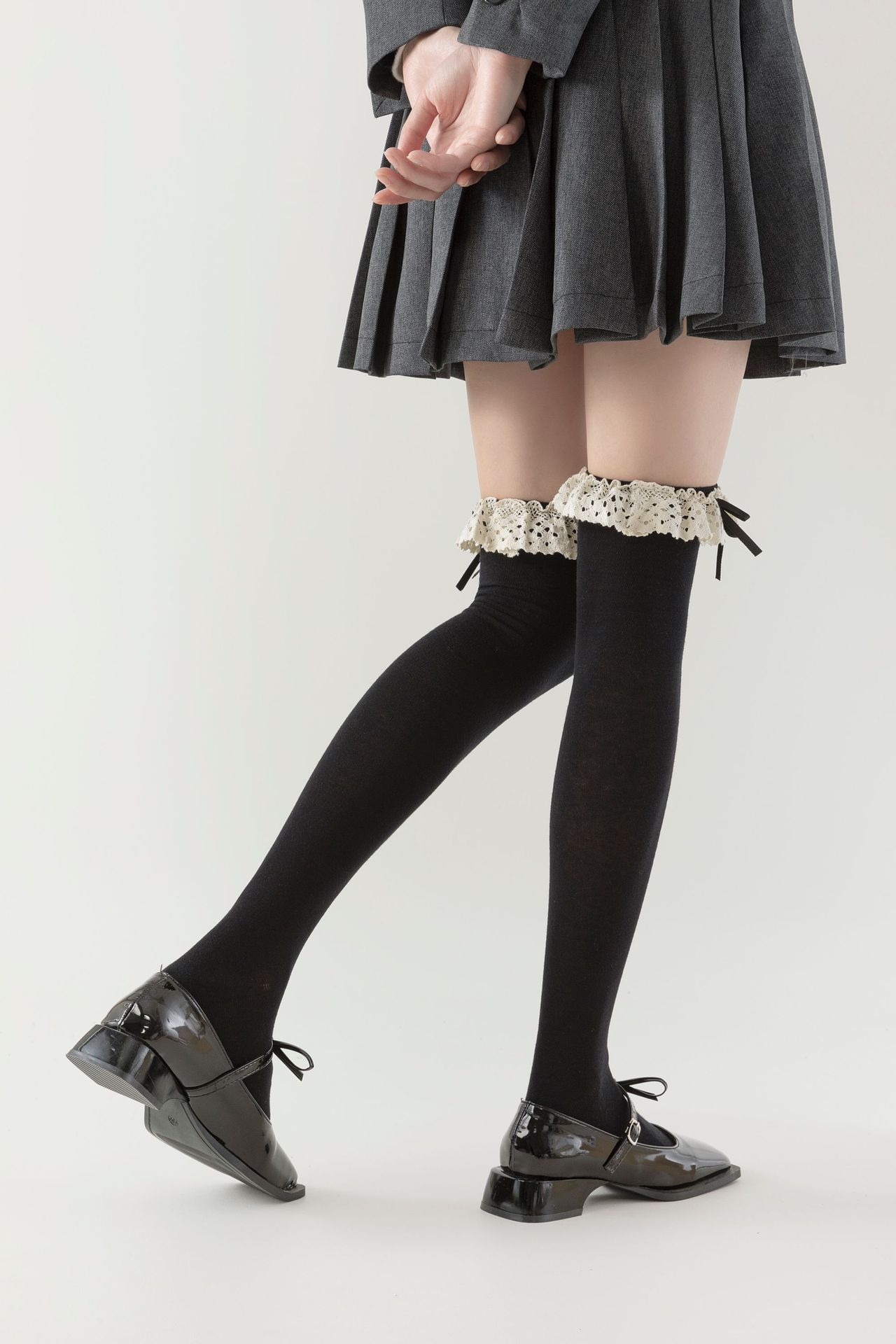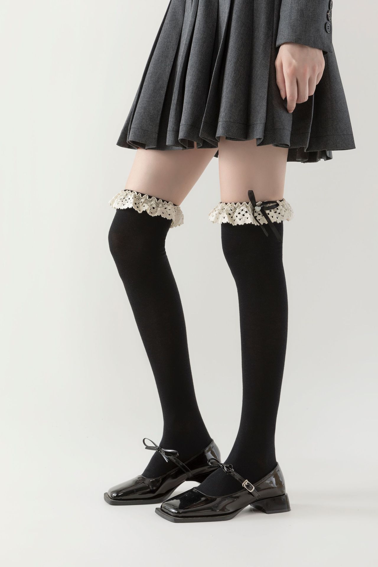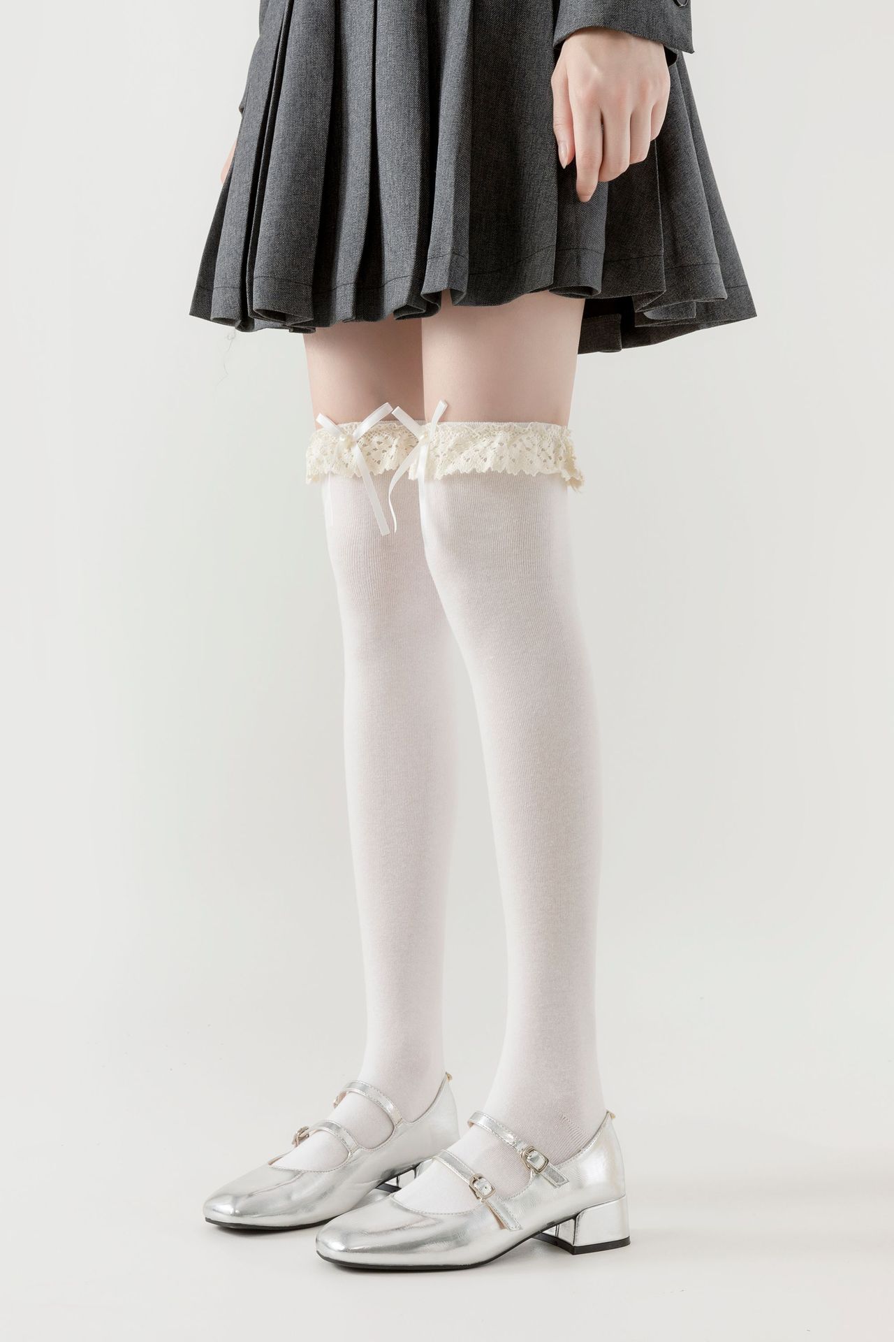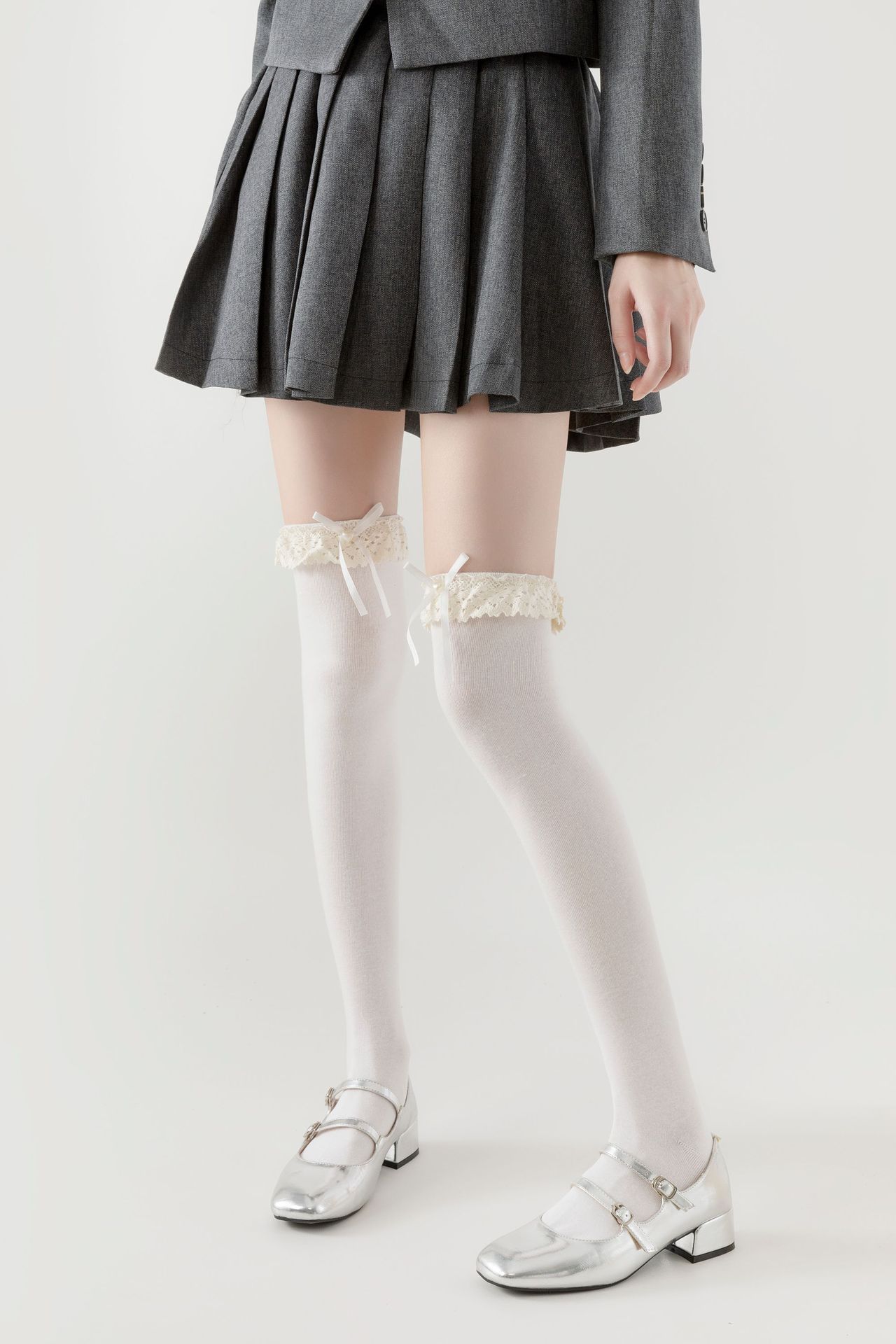 Meias Lolita de Cano Longo Acima do Joelho Femininas Outono e Inverno Renda Renda Laço Meias Meninas Meias Altas Meias de Bezerro
