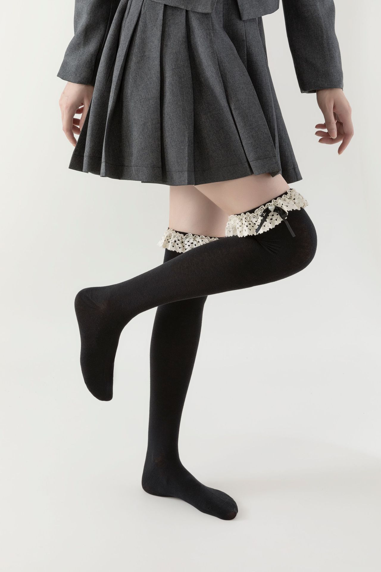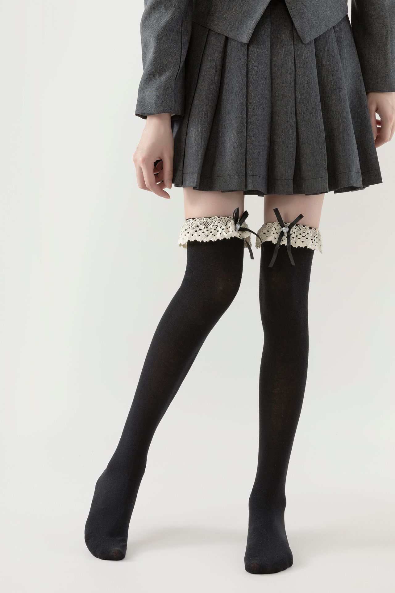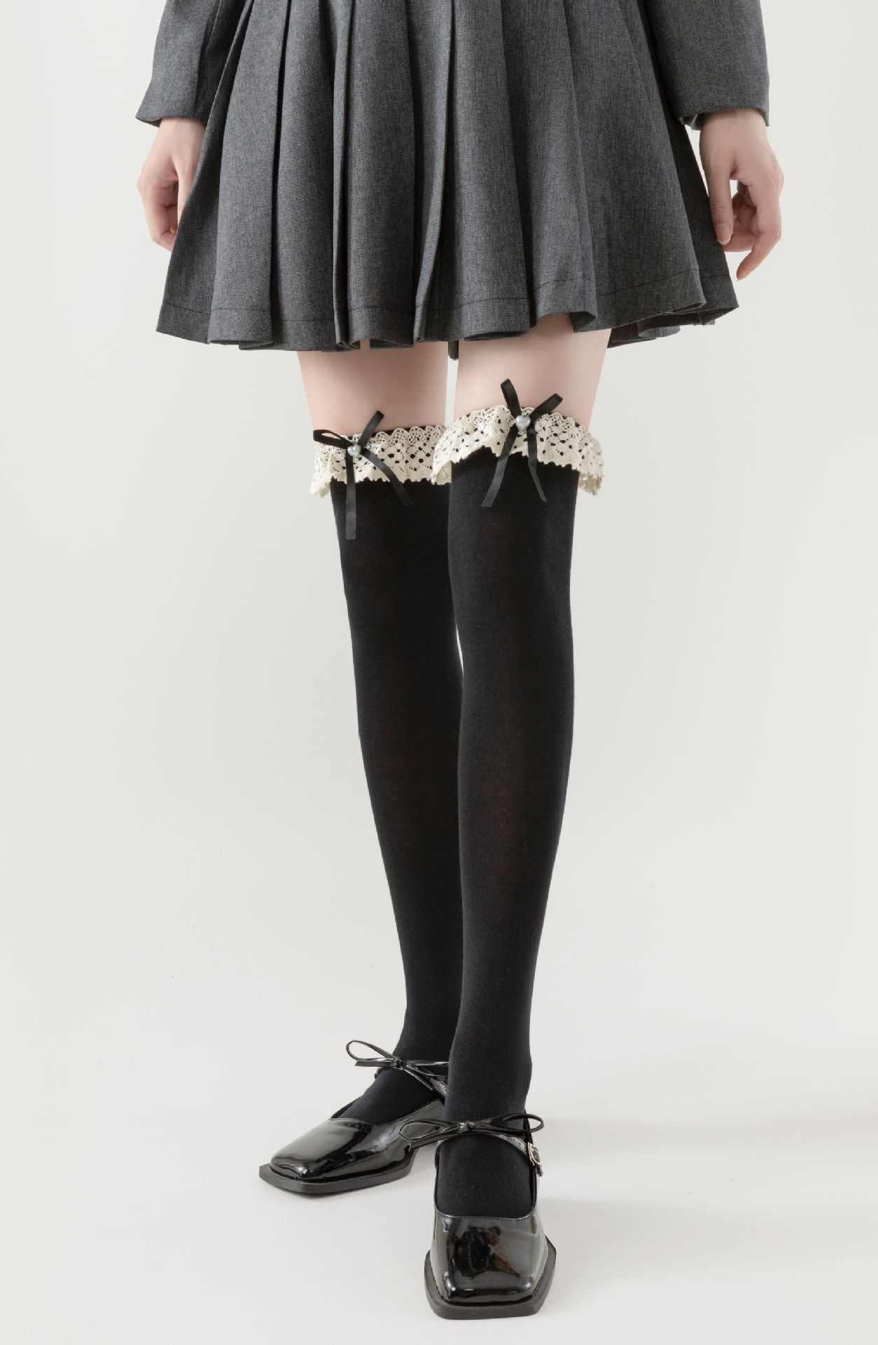 Meias Lolita de Cano Longo Acima do Joelho Femininas Outono e Inverno Renda Renda Laço Meias Meninas Meias Altas Meias de Bezerro