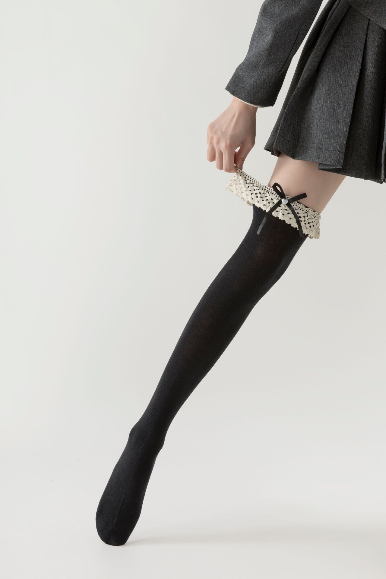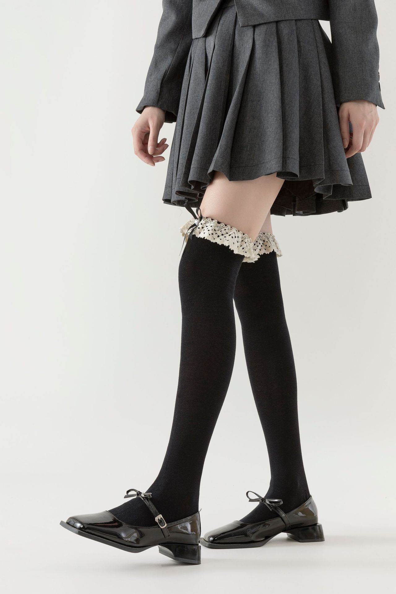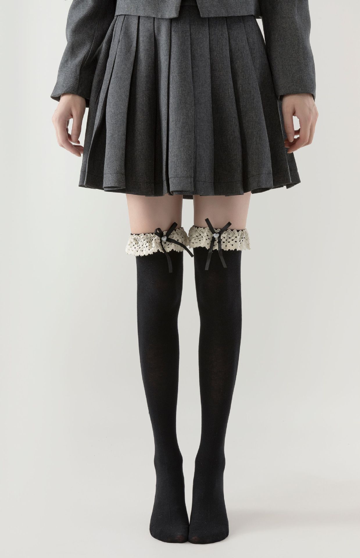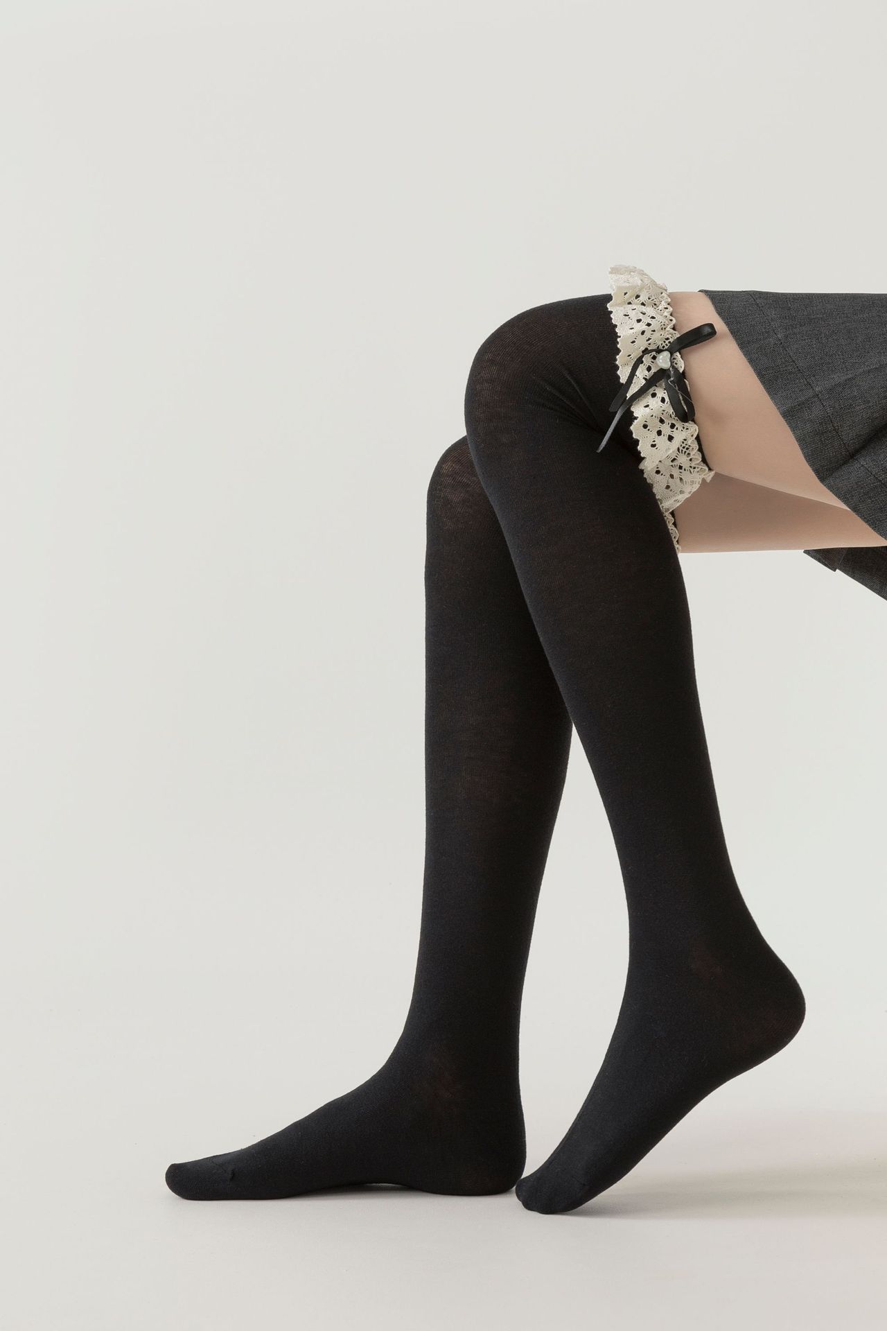 Meias Lolita de Cano Longo Acima do Joelho Femininas Outono e Inverno Renda Renda Laço Meias Meninas Meias Altas Meias de Bezerro