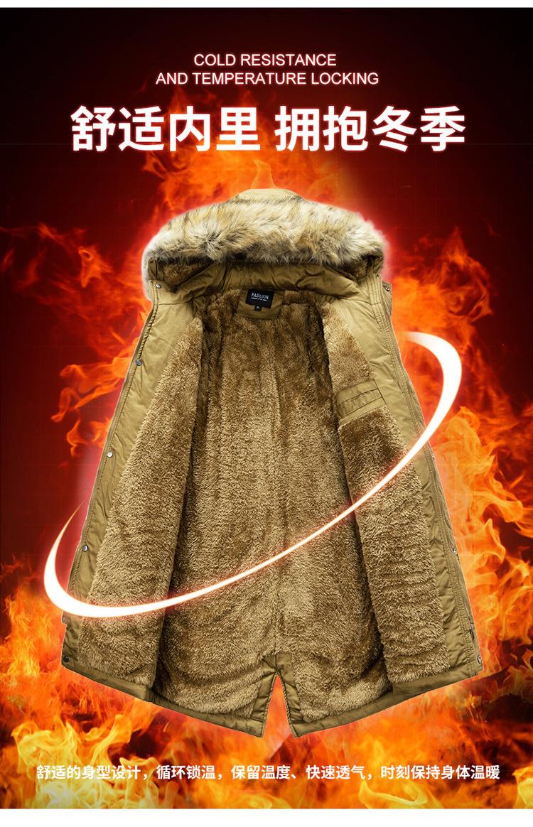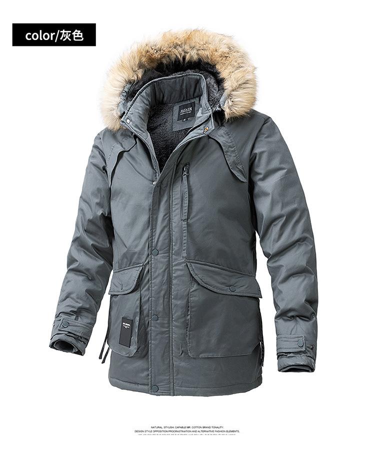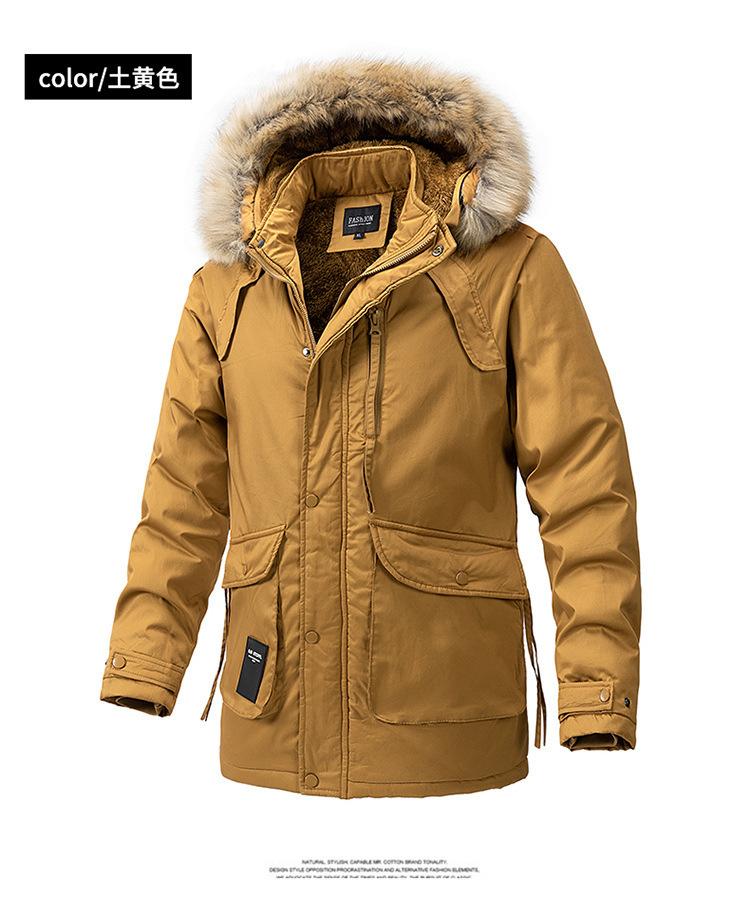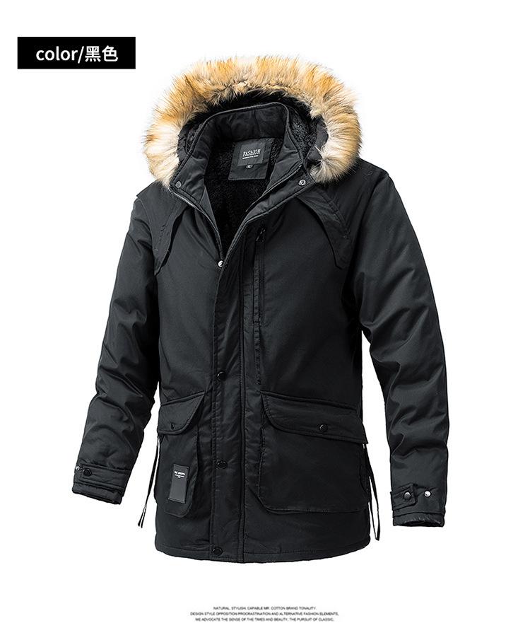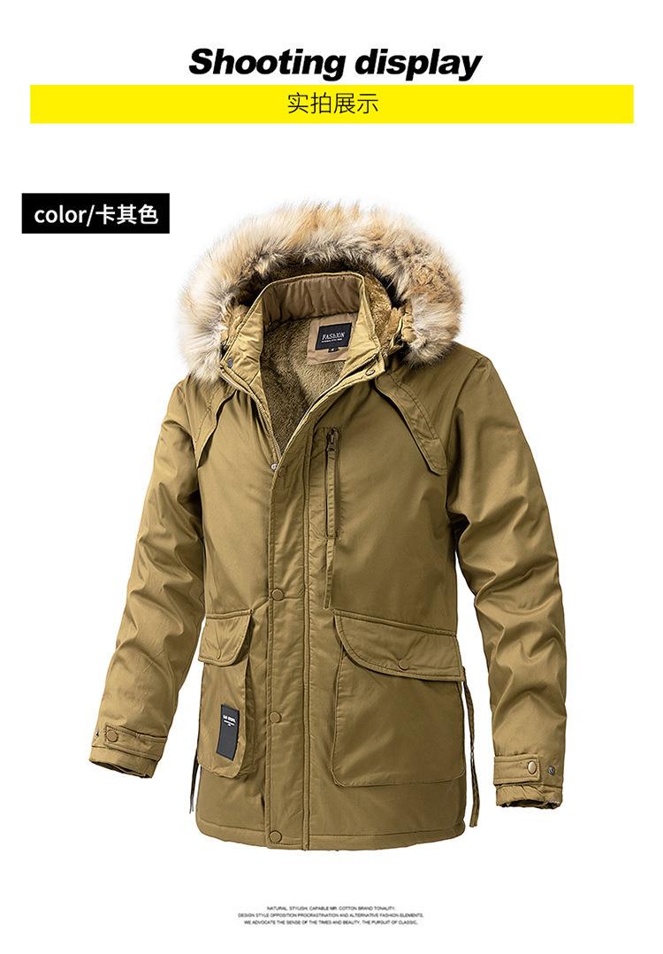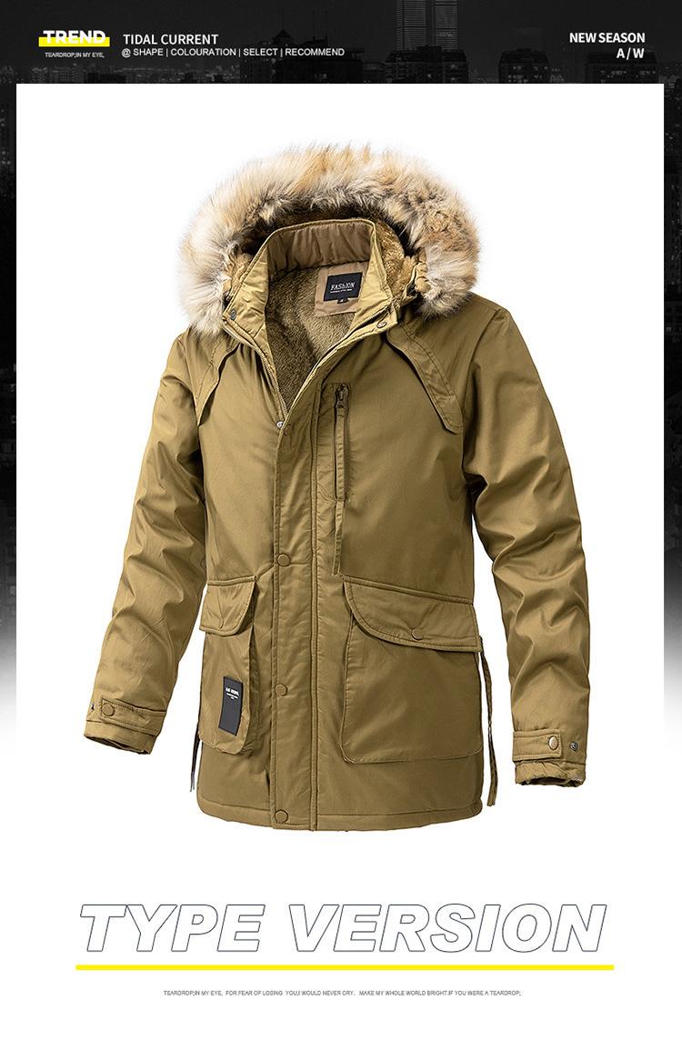 Casaco masculino de inverno estilo coreano masculino, casaco grosso de comprimento médio acolchoado de algodão, forro de lã, jaqueta grossa acolchoada de algodão, casaco longo acolchoado de algodão