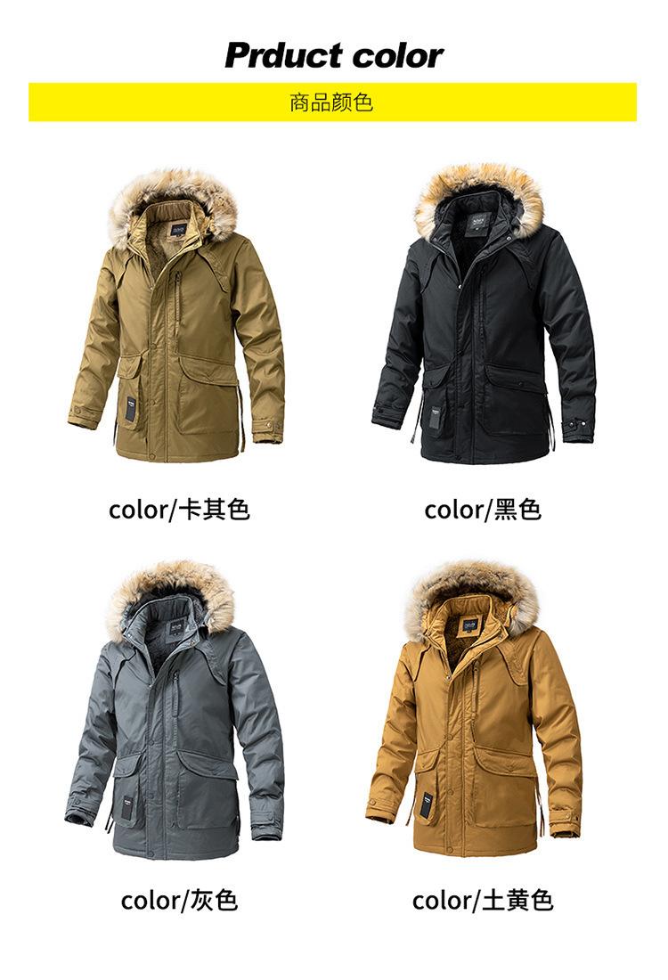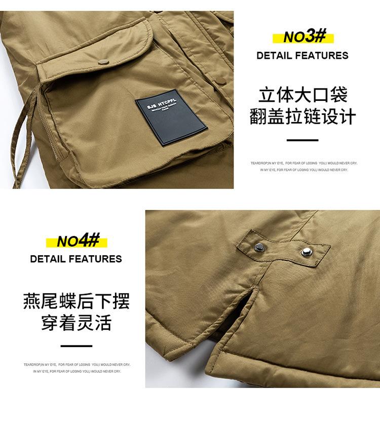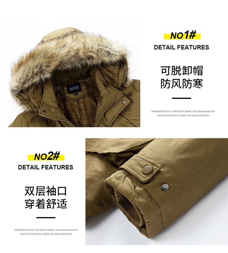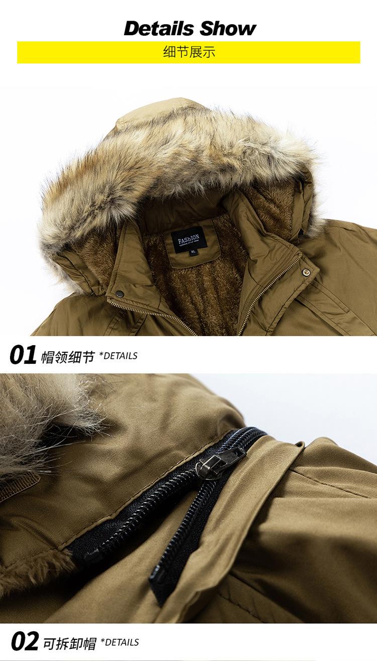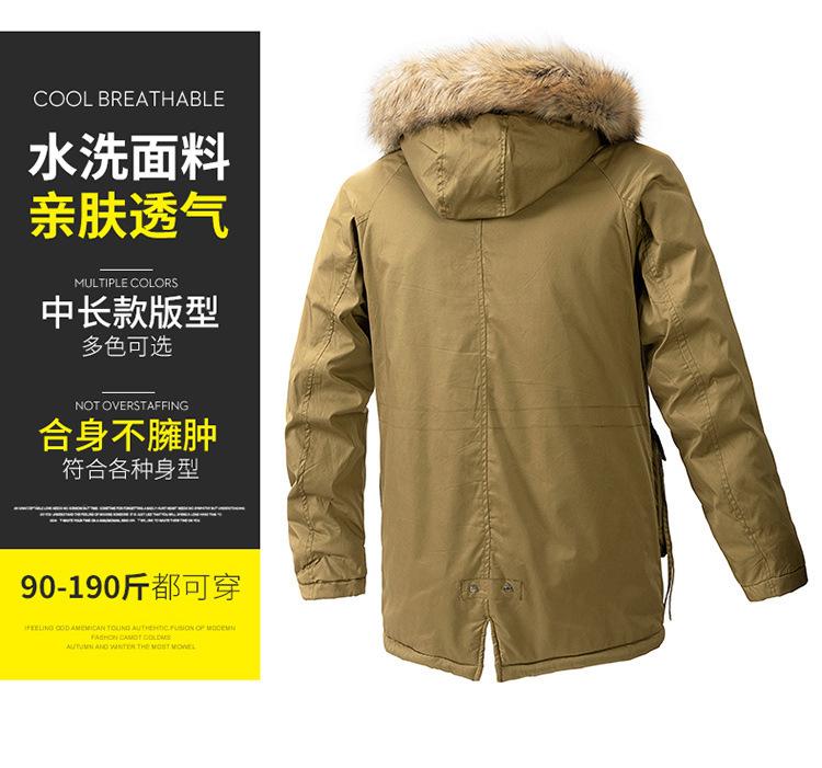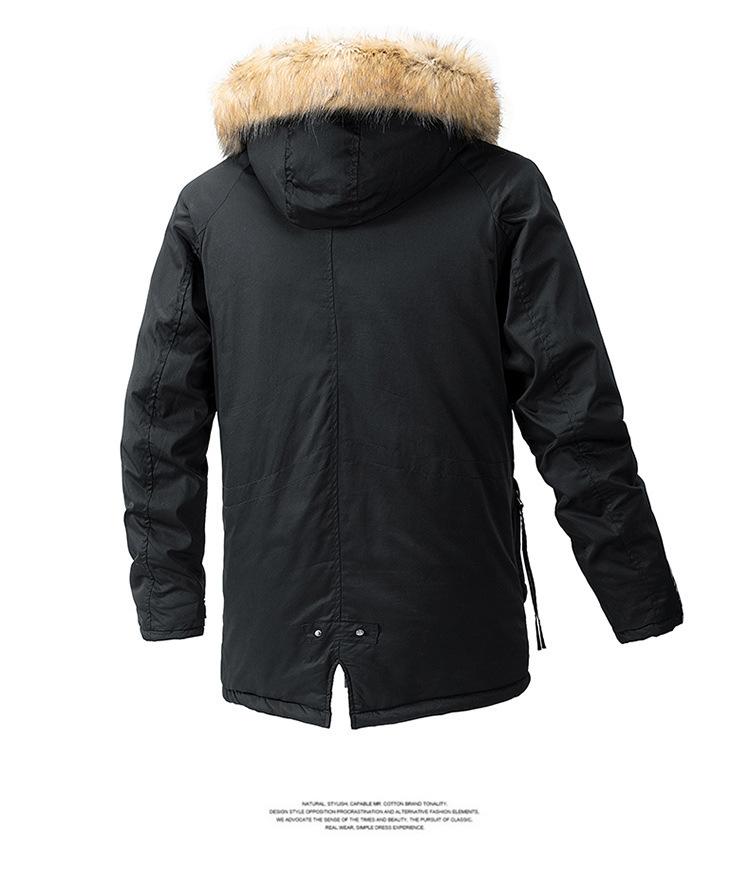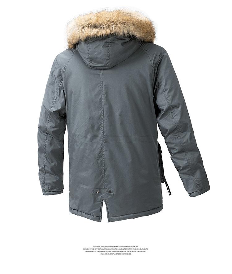 Casaco masculino de inverno estilo coreano masculino, casaco grosso de comprimento médio acolchoado de algodão, forro de lã, jaqueta grossa acolchoada de algodão, casaco longo acolchoado de algodão