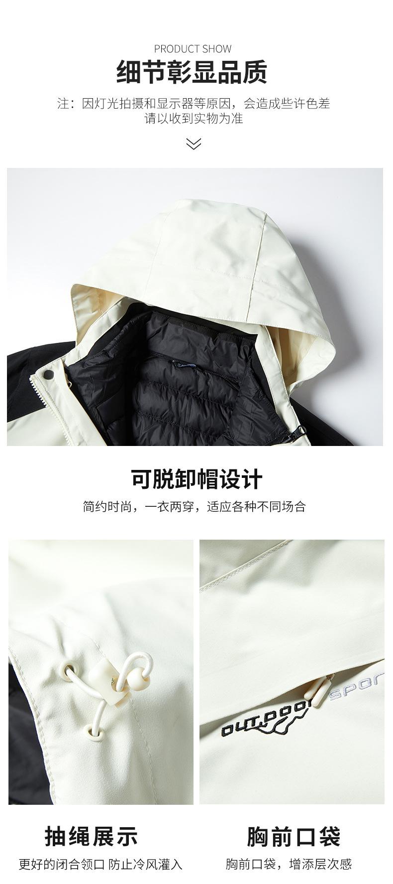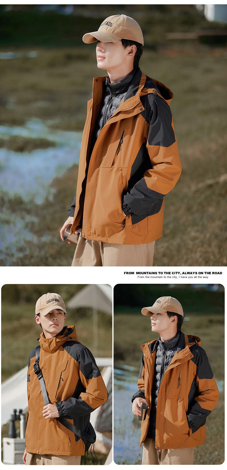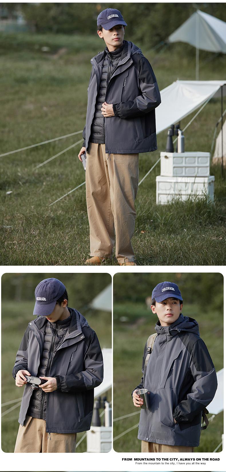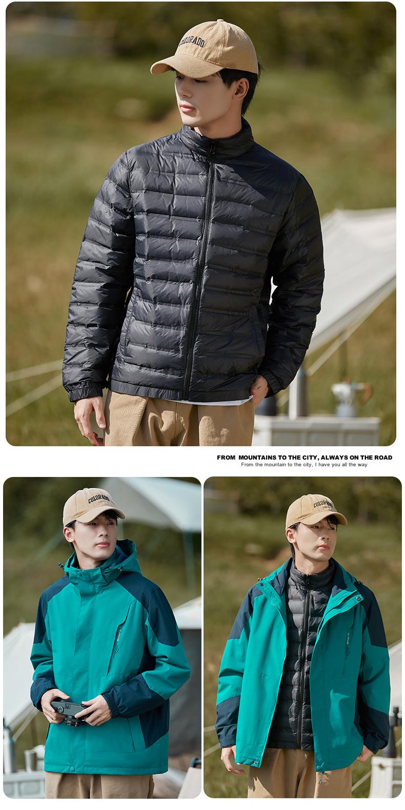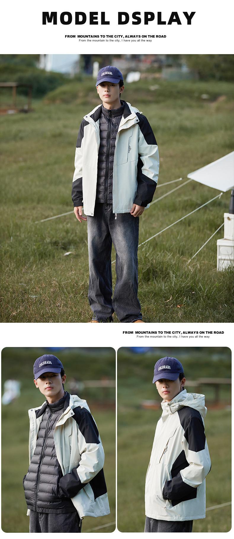 Masculino Outdoor Três em Um Destacável Down Rocker Casaco Interno À Prova de Vento À Prova D'Água Casual Montanhismo Terno