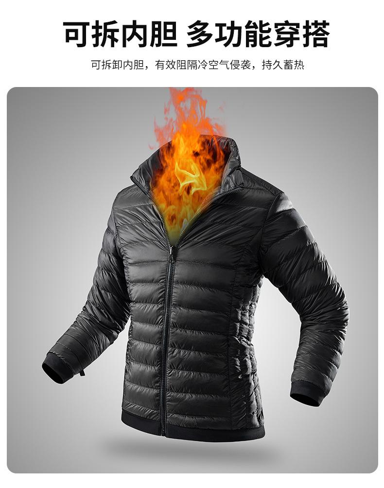 Men's khaki down two-piece set, Men's white down two-piece set, Men's black down two-piece set, Men's dark blu...