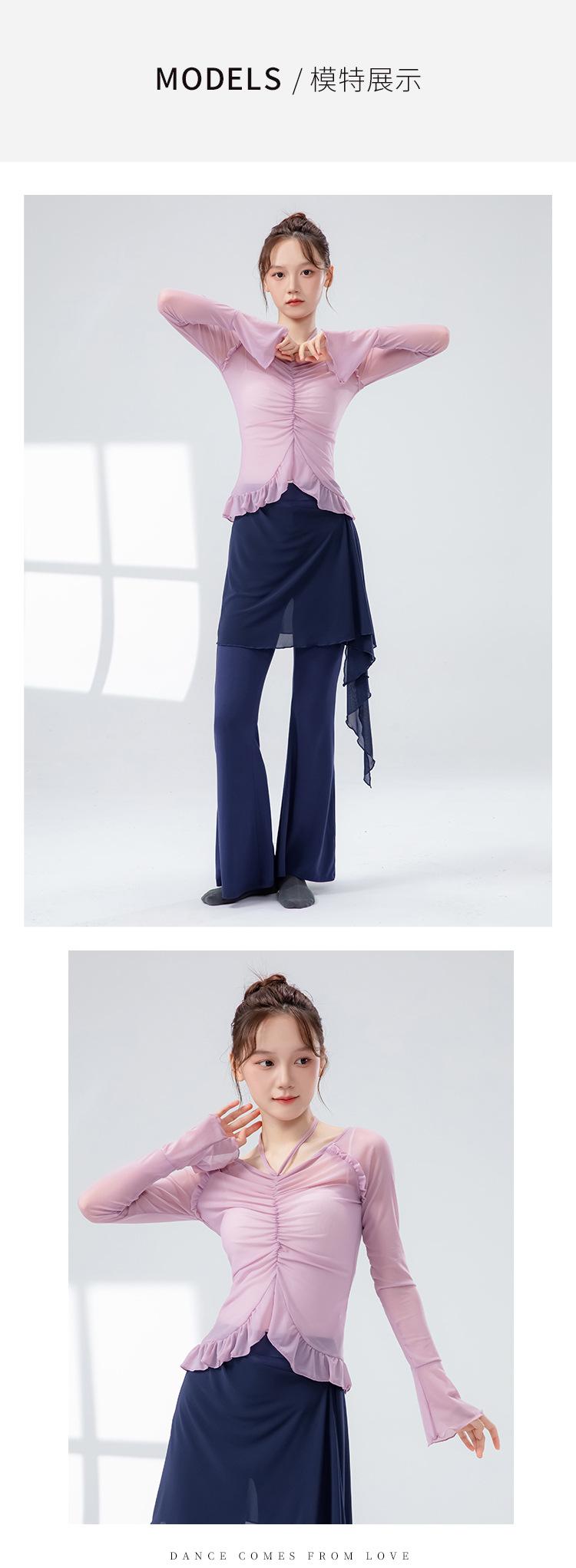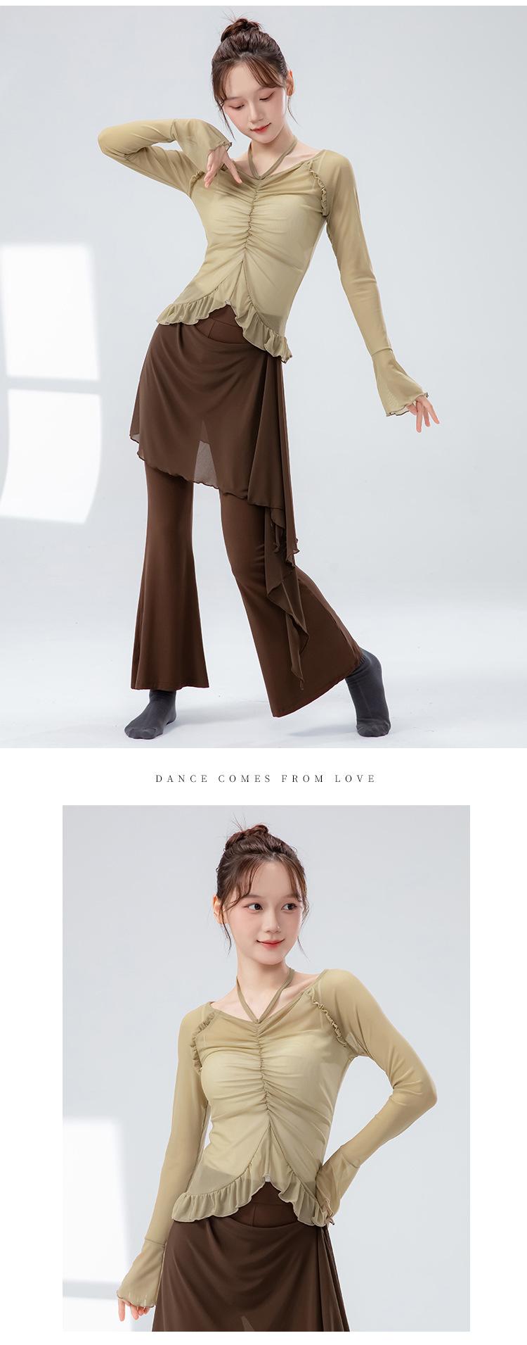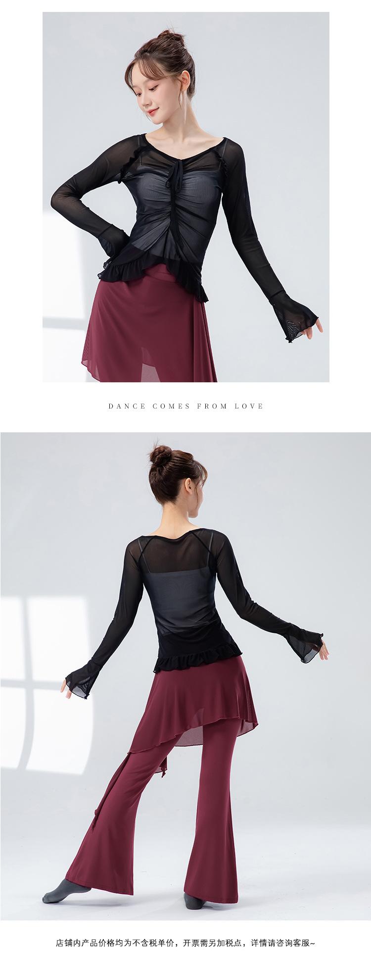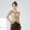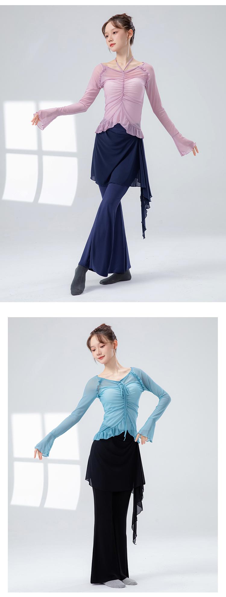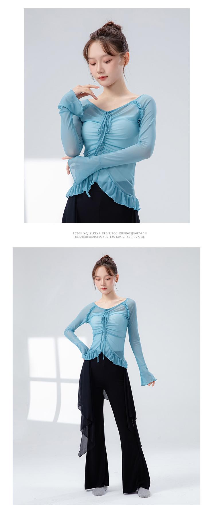 Roupas de Prática de Dança Clássica para Mulheres, Novos Tops de Malha Elástica Ajustados de Manga Longa, Trajes de Apresentação de Dança Chinesa Dança Moderna