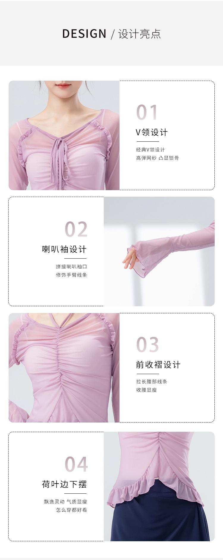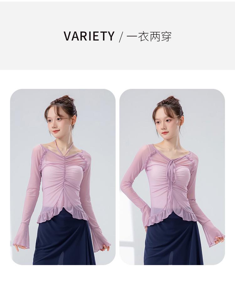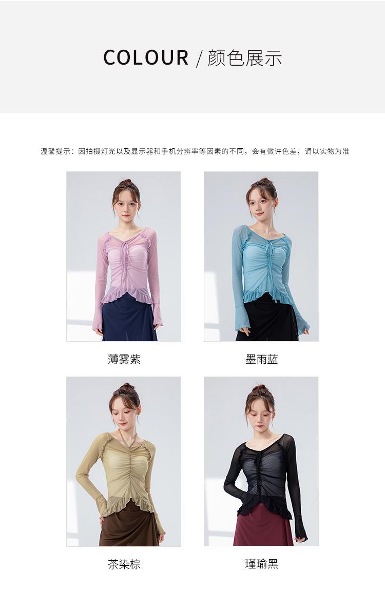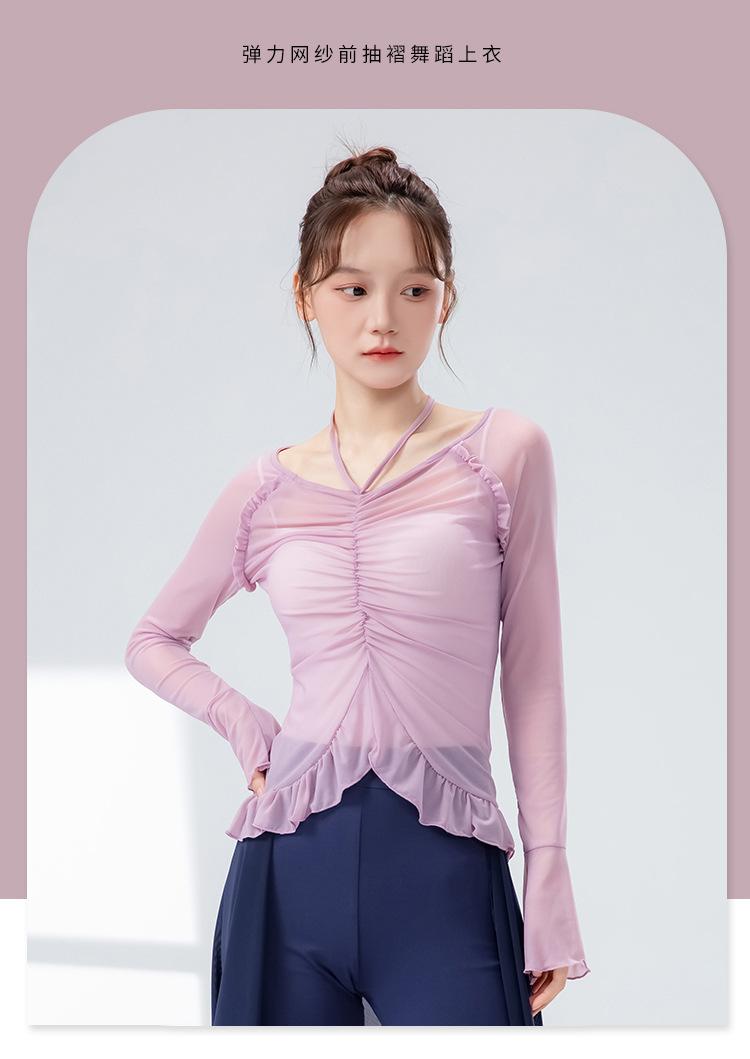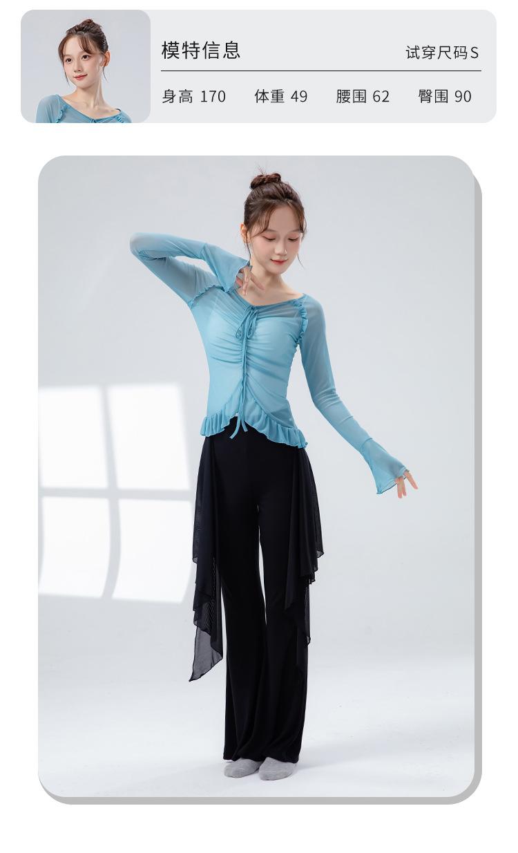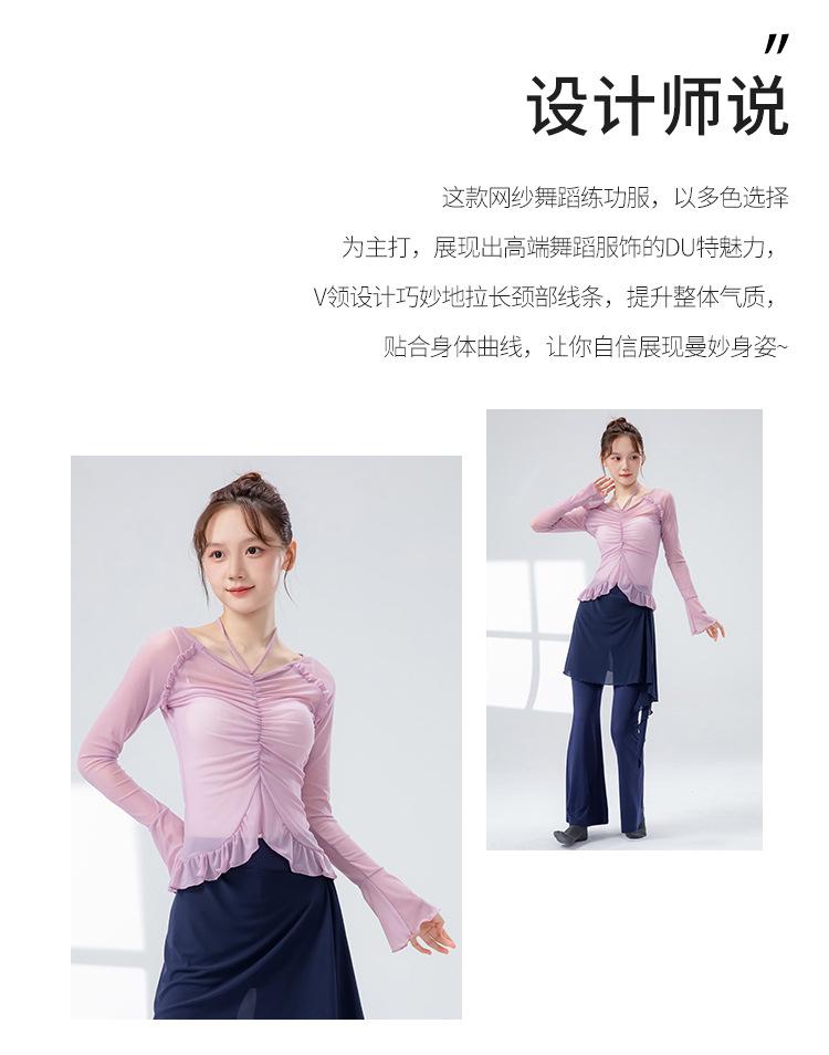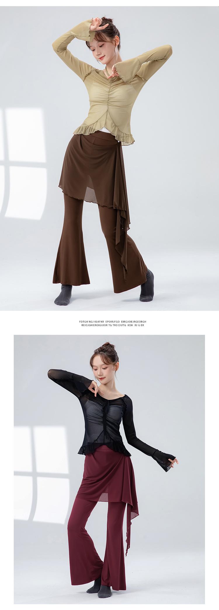 Roupas de Prática de Dança Clássica para Mulheres, Novos Tops de Malha Elástica Ajustados de Manga Longa, Trajes de Apresentação de Dança Chinesa Dança Moderna