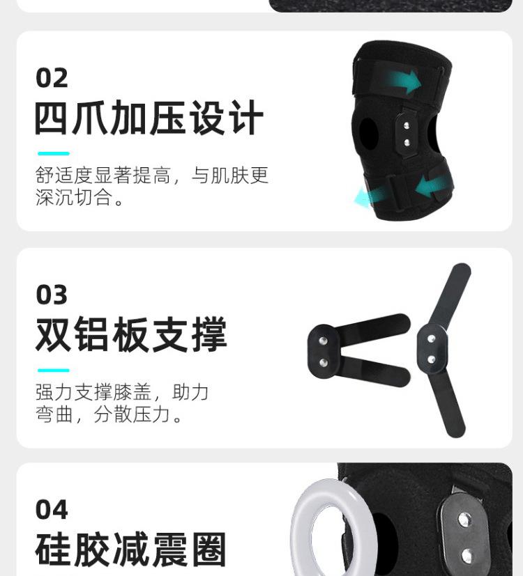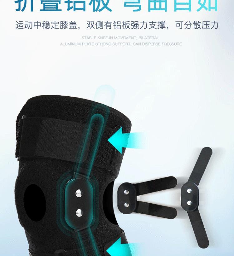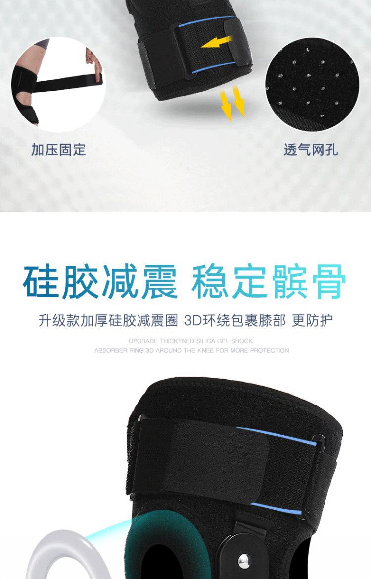 Joelheiras de suporte com placa dupla de aço, proteção reforçada para a patela, tiras de silicone antiderrapantes, basquete, corrida, menisco, dispositivo de resistência fixa