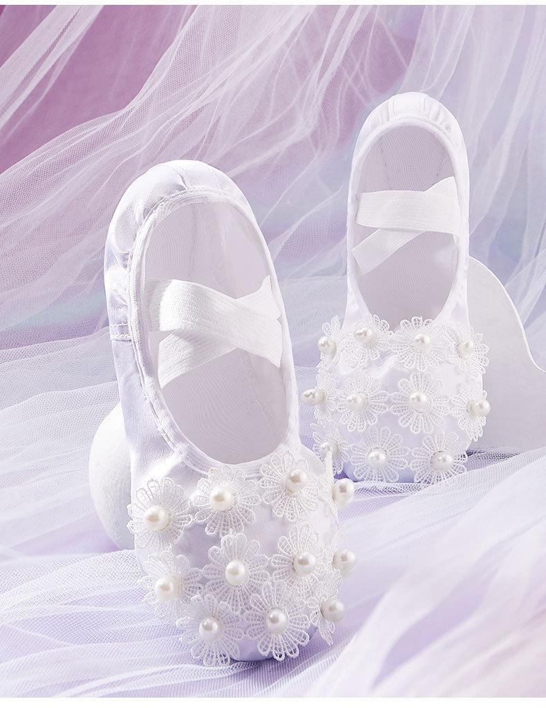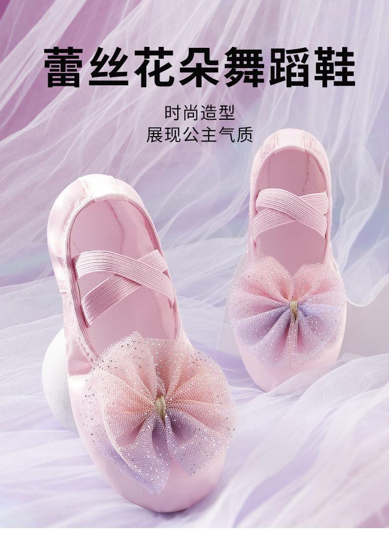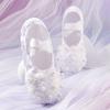 Sapatos de Pata de Gato Infantil Flor de Cetim Renda Sem Cadarço Sola Macia Sapatos de Dança Adulto Prática Sapatos de Yoga Atacado Salto Baixo
