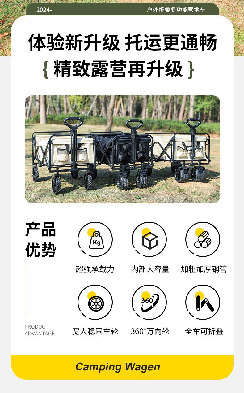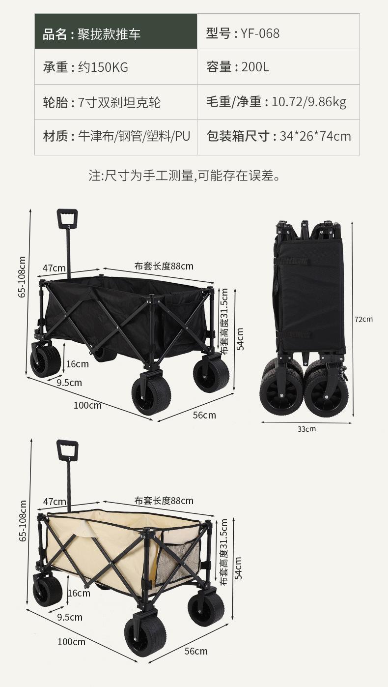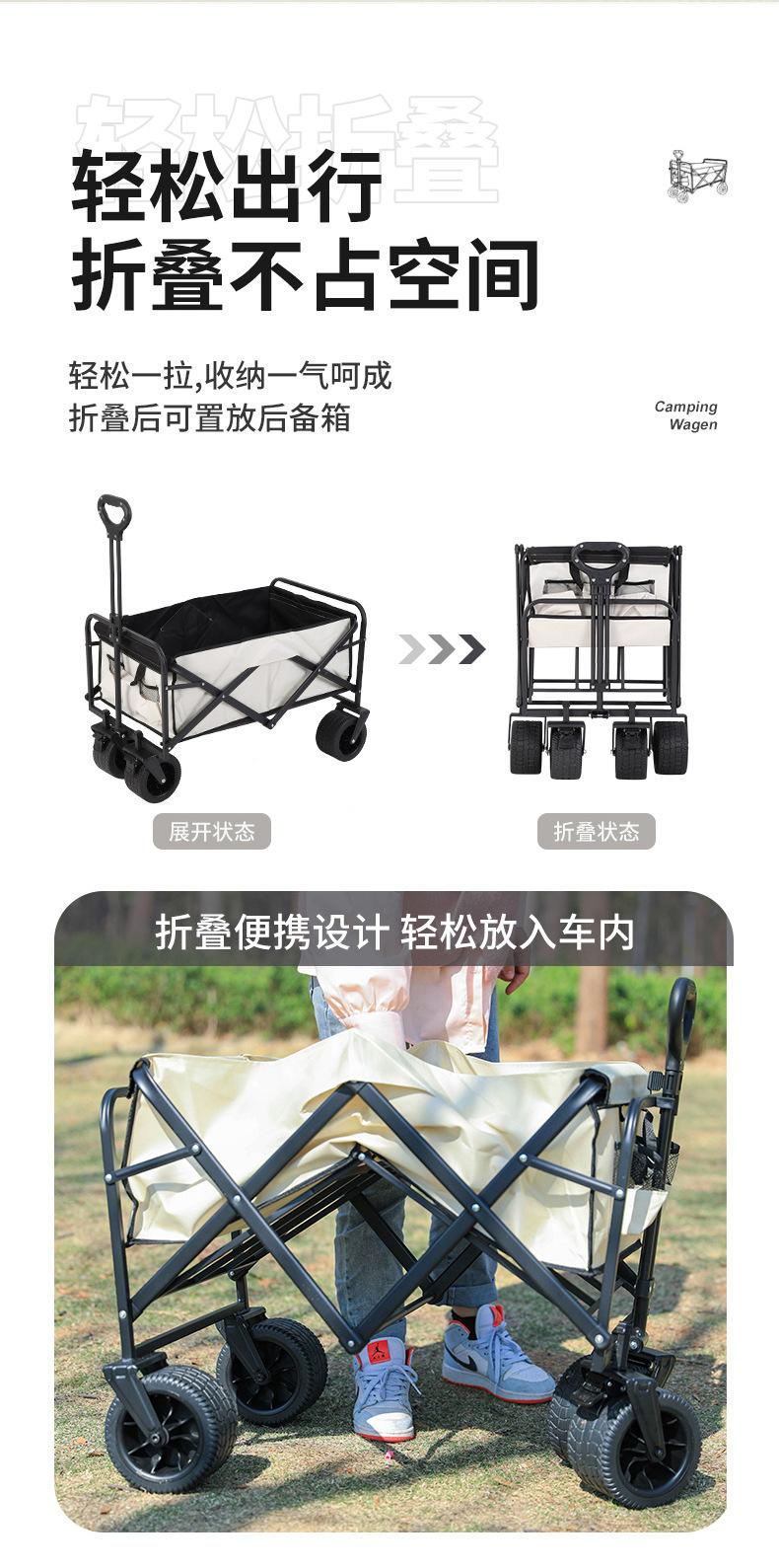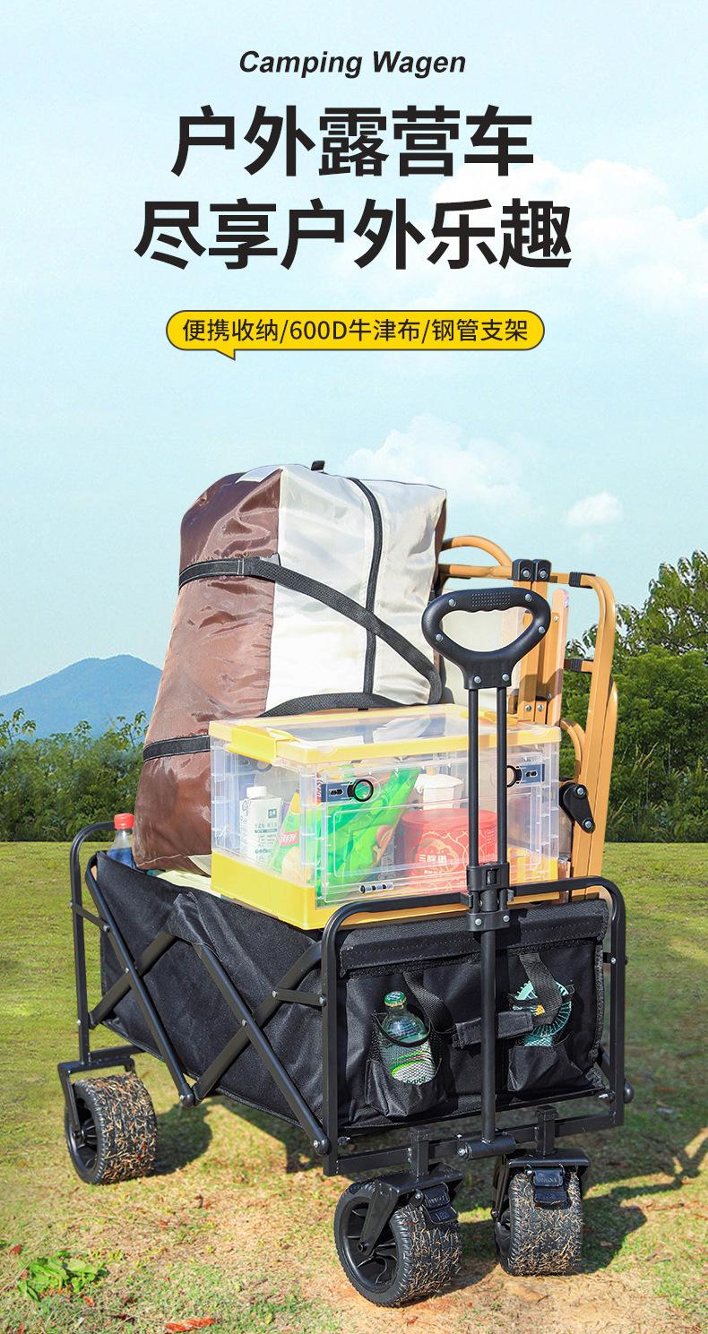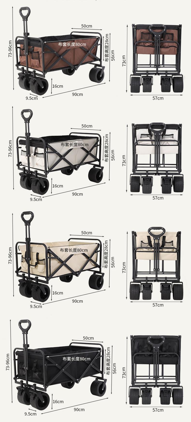 Carrinho de Camping ao Ar Livre, Carrinho Dobrável de Mão para Barracas de Mercado, Carrinho de Campismo Leve com Barra de Puxar, Atacado do Fabricante