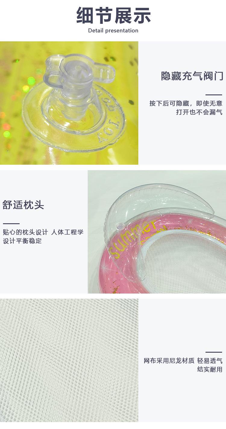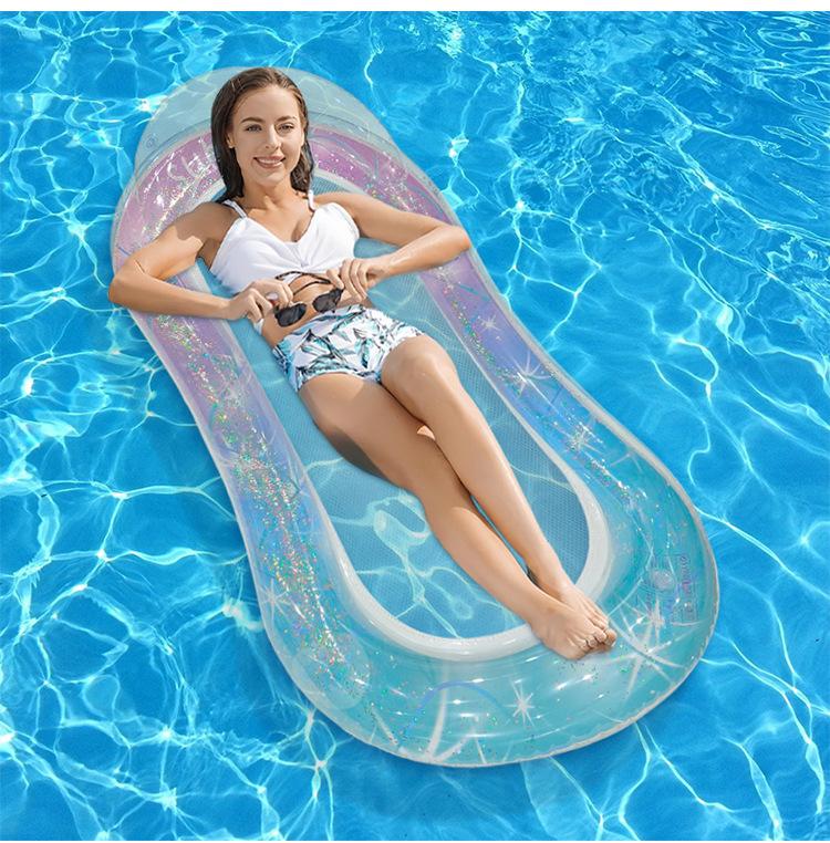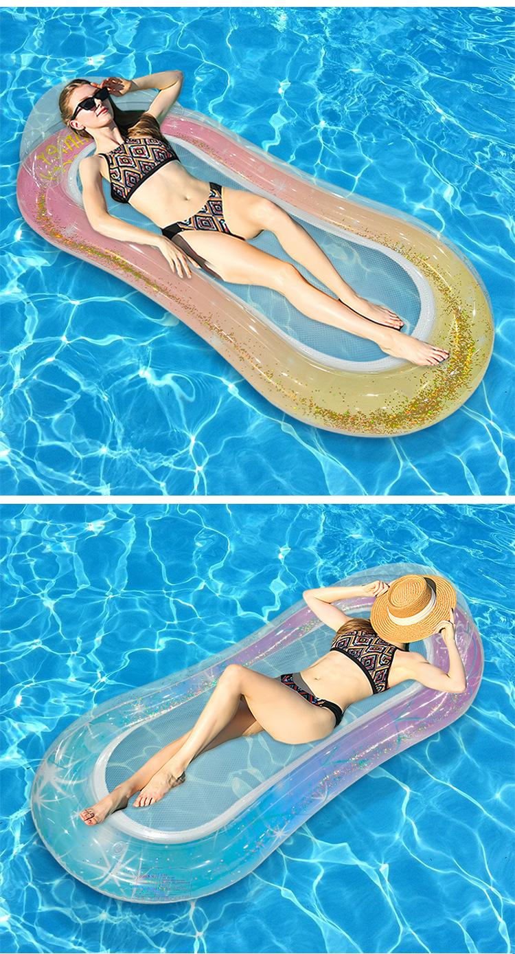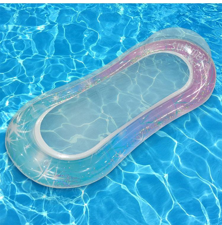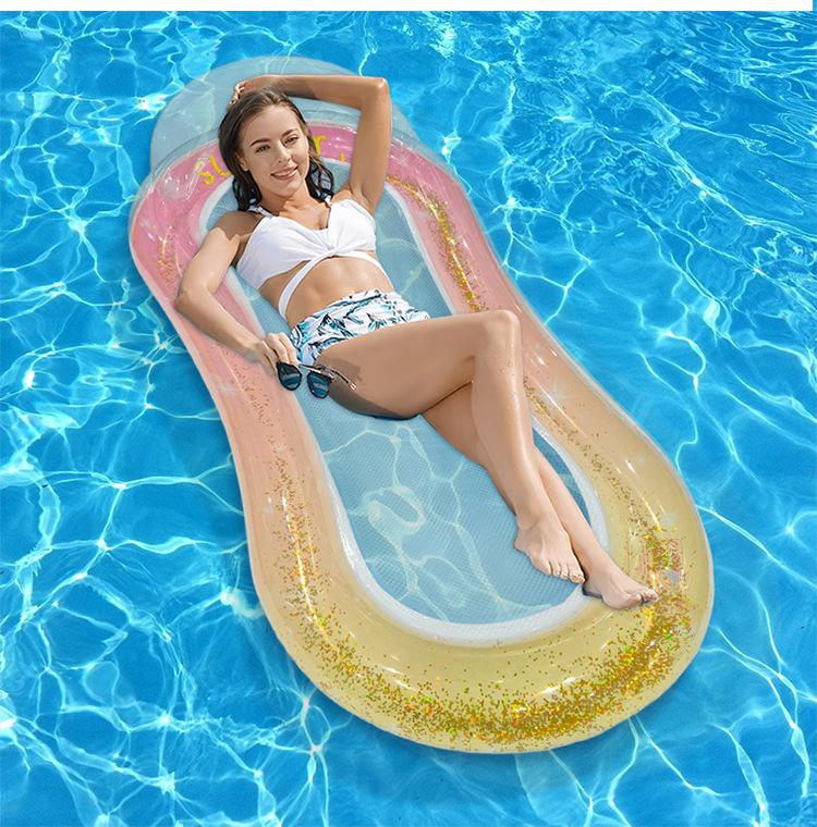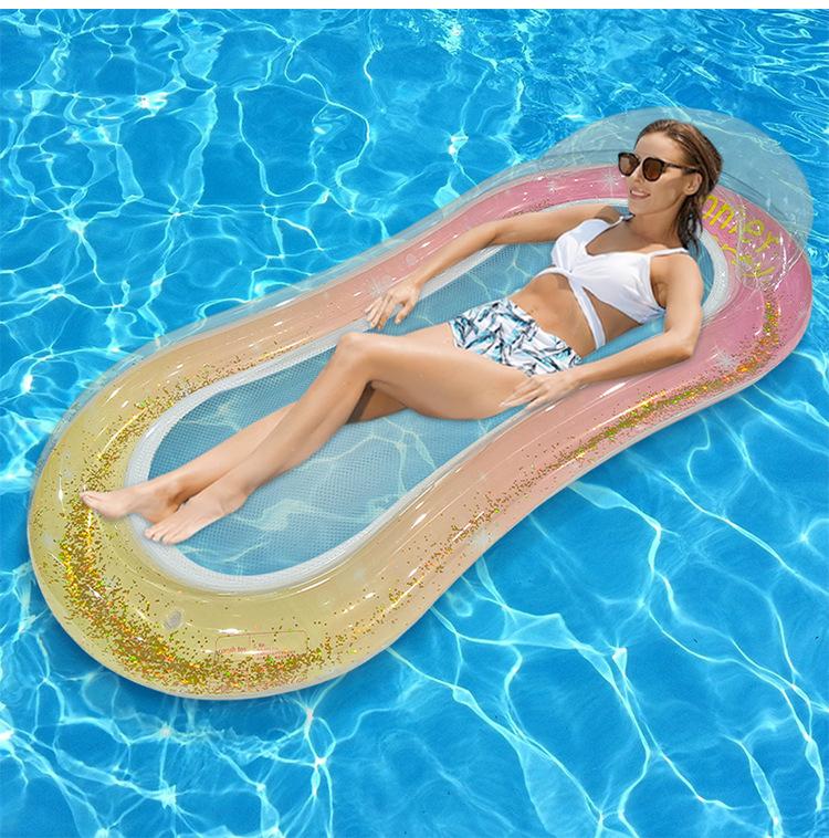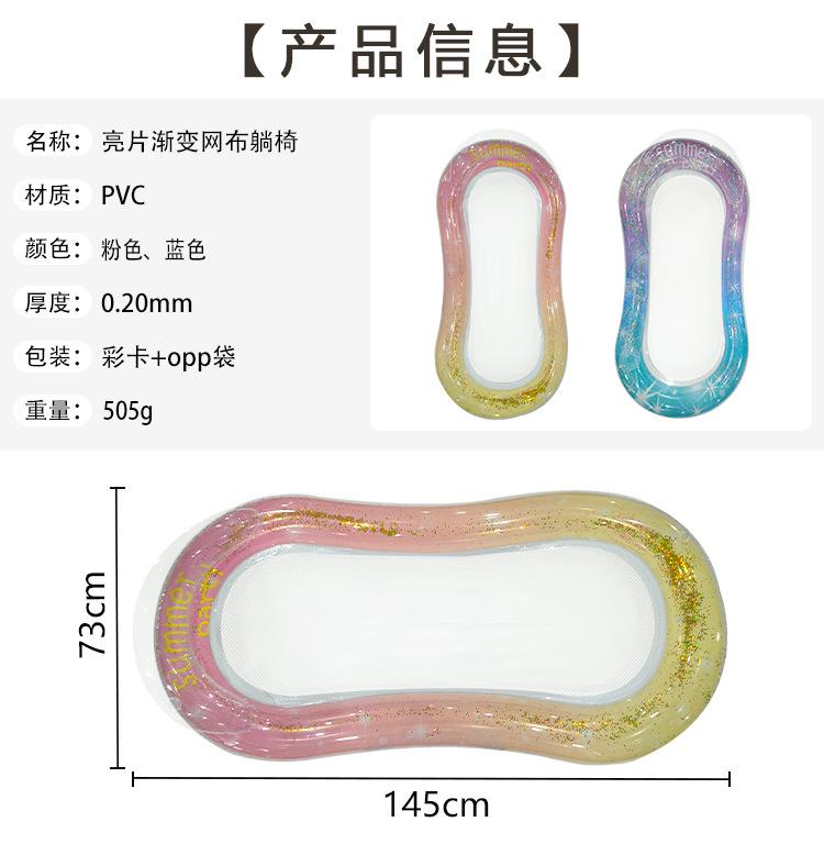 Encosto dobrável de rede de diversão aquática transfronteiriça, cama reclinável flutuante, proteção ambiental, lantejoulas de PVC, pó laranja, gradiente, linha flutuante inflável